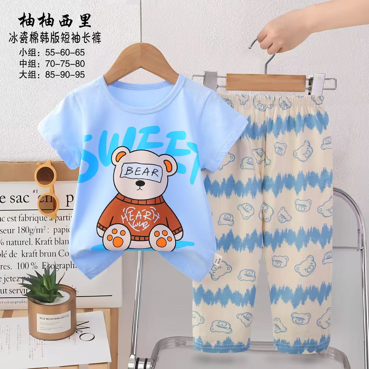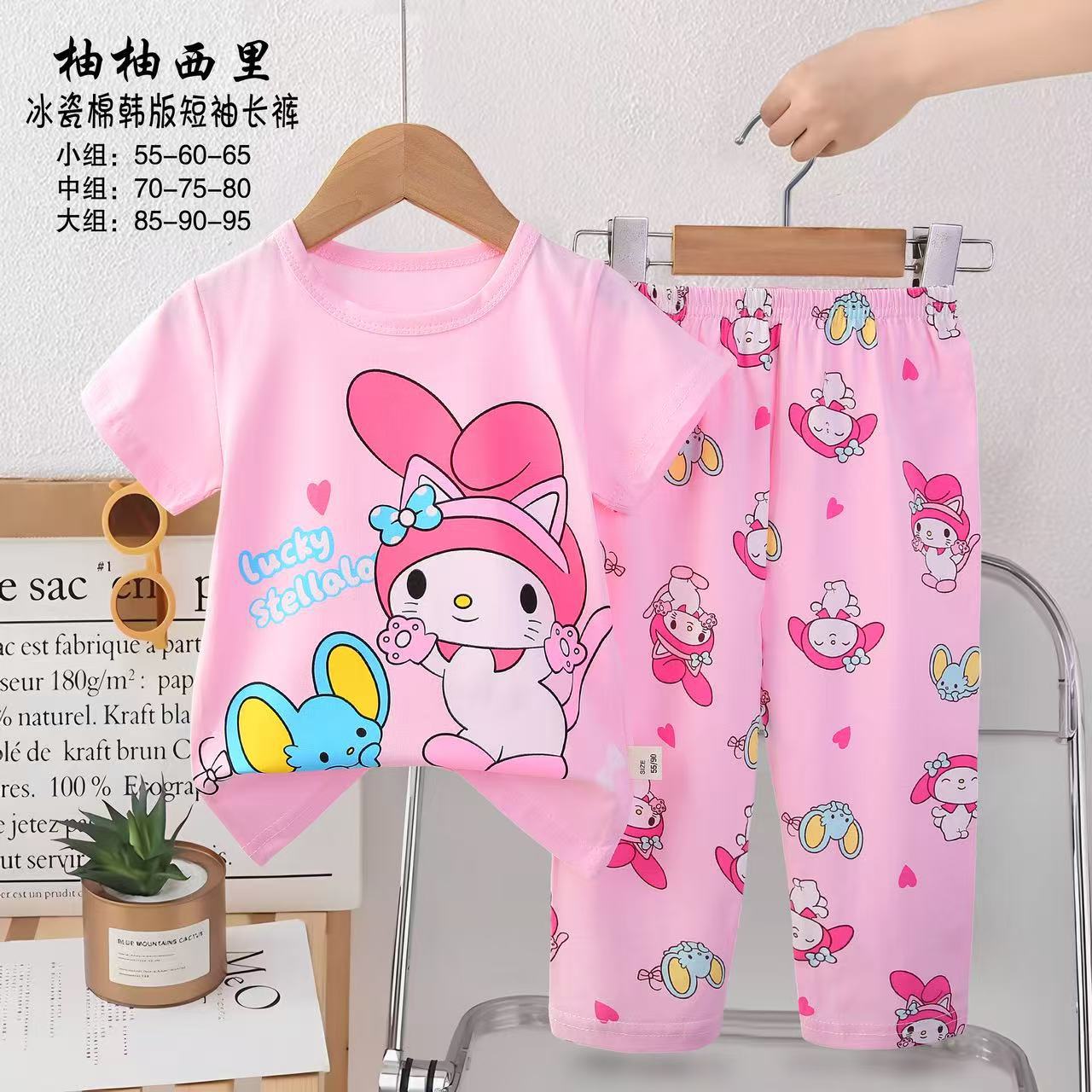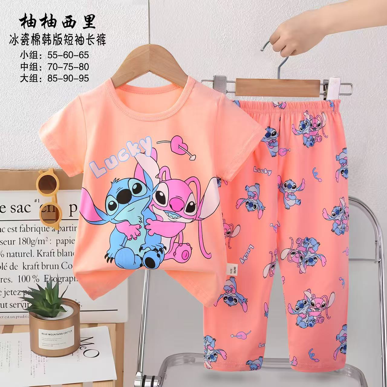 2025년 신상 아동 잠옷 만화 여름 한국 스타일 반팔 반바지 아동복 제조업체 공급스토어 가기