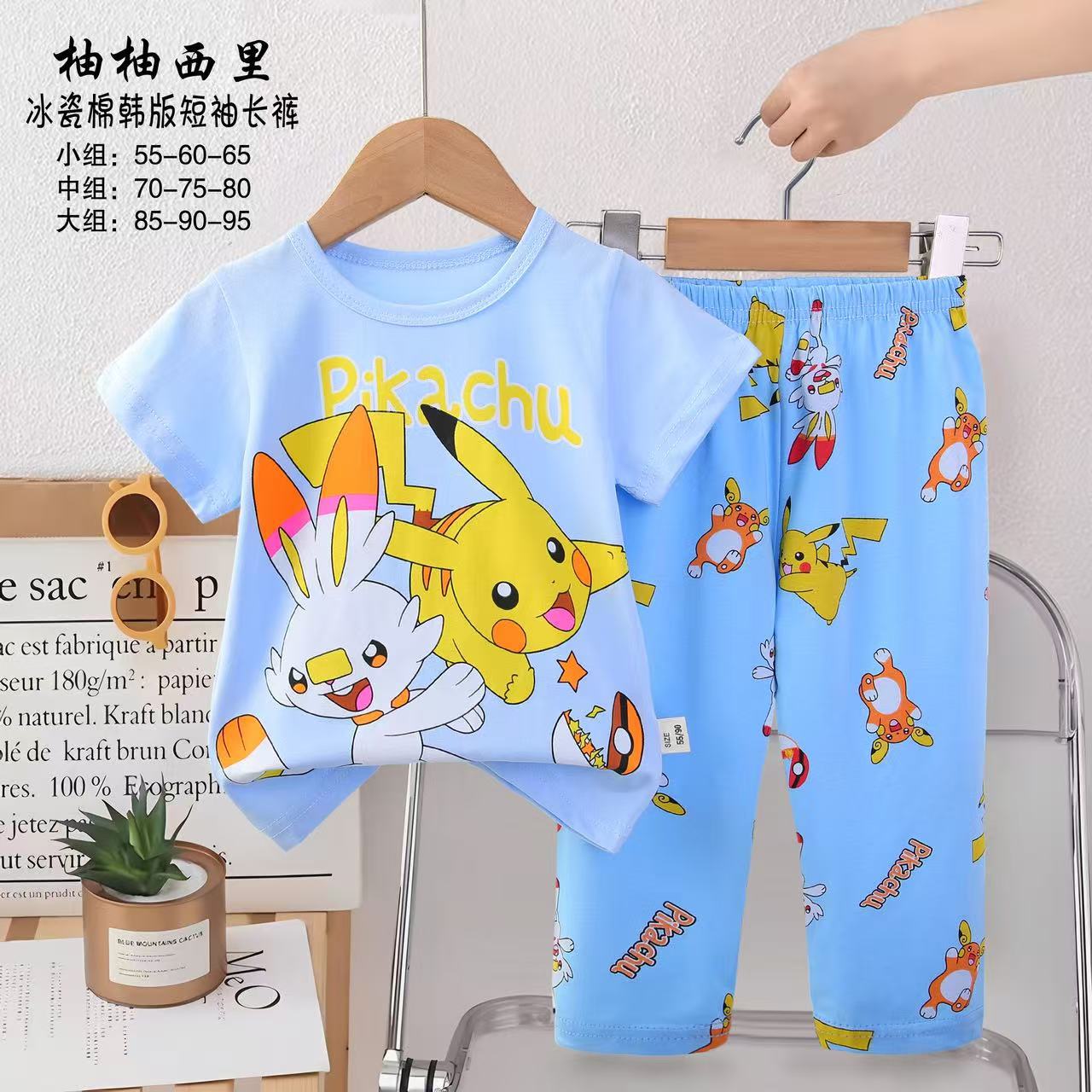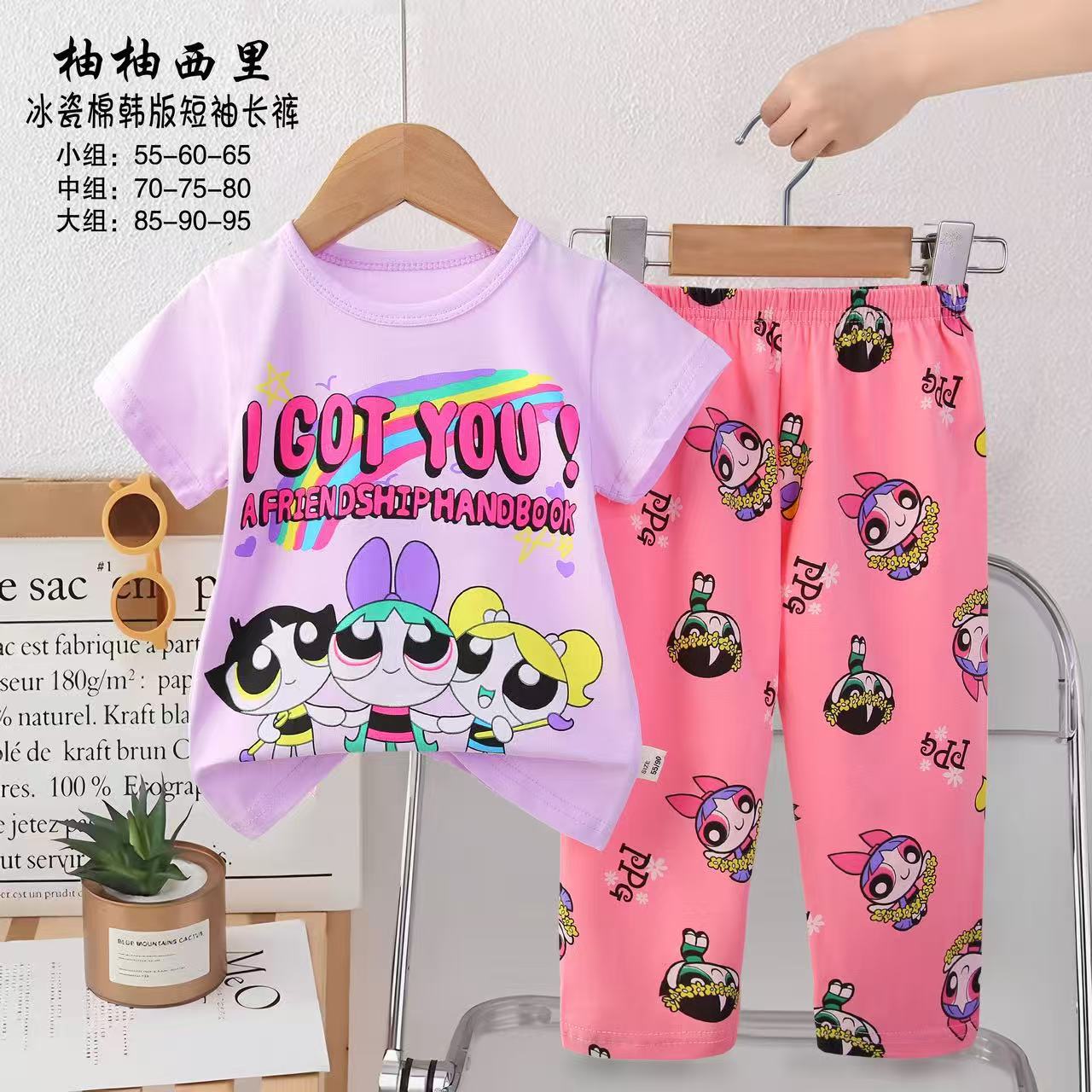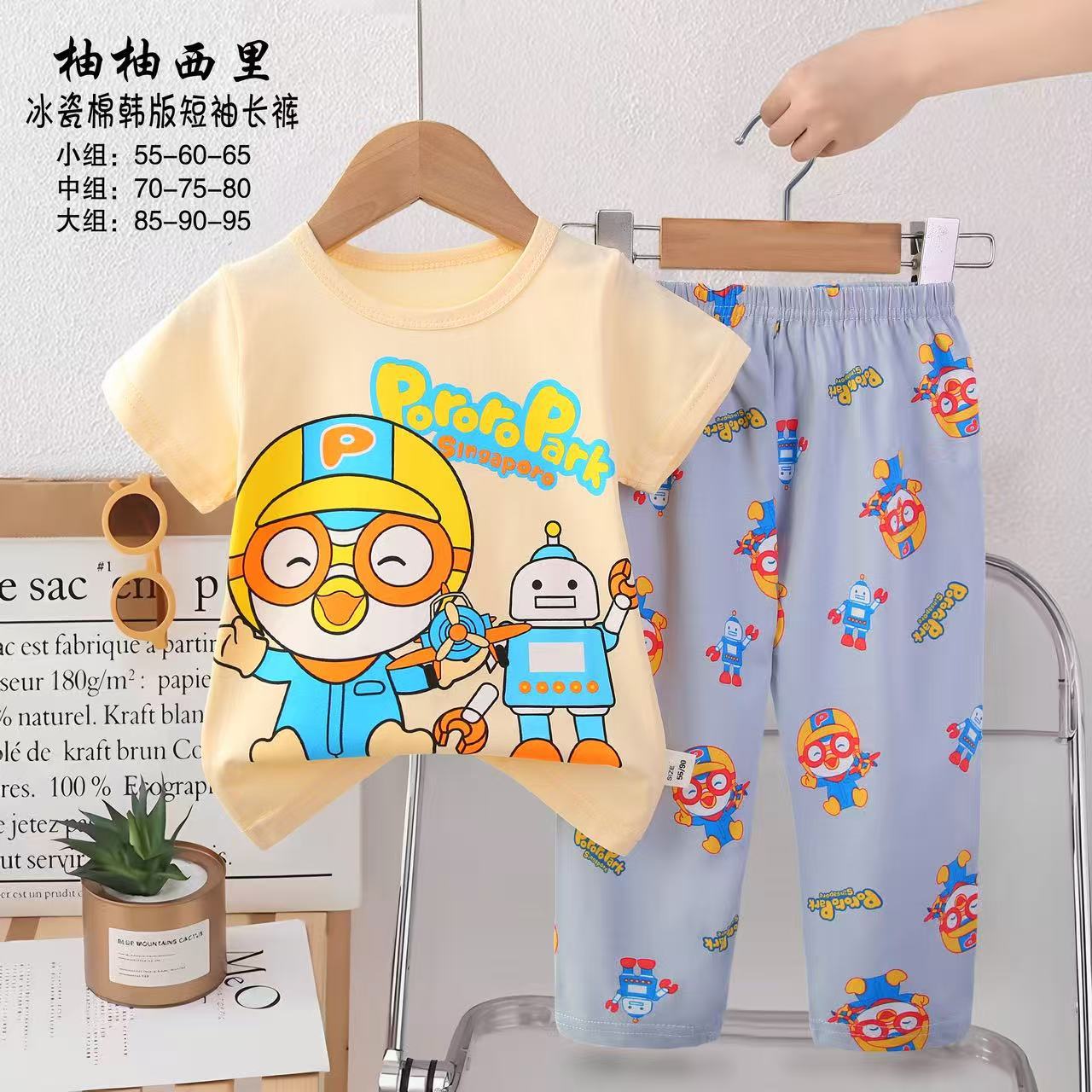 2025년 신상 아동 잠옷 만화 여름 한국 스타일 반팔 반바지 아동복 제조업체 공급스토어 가기