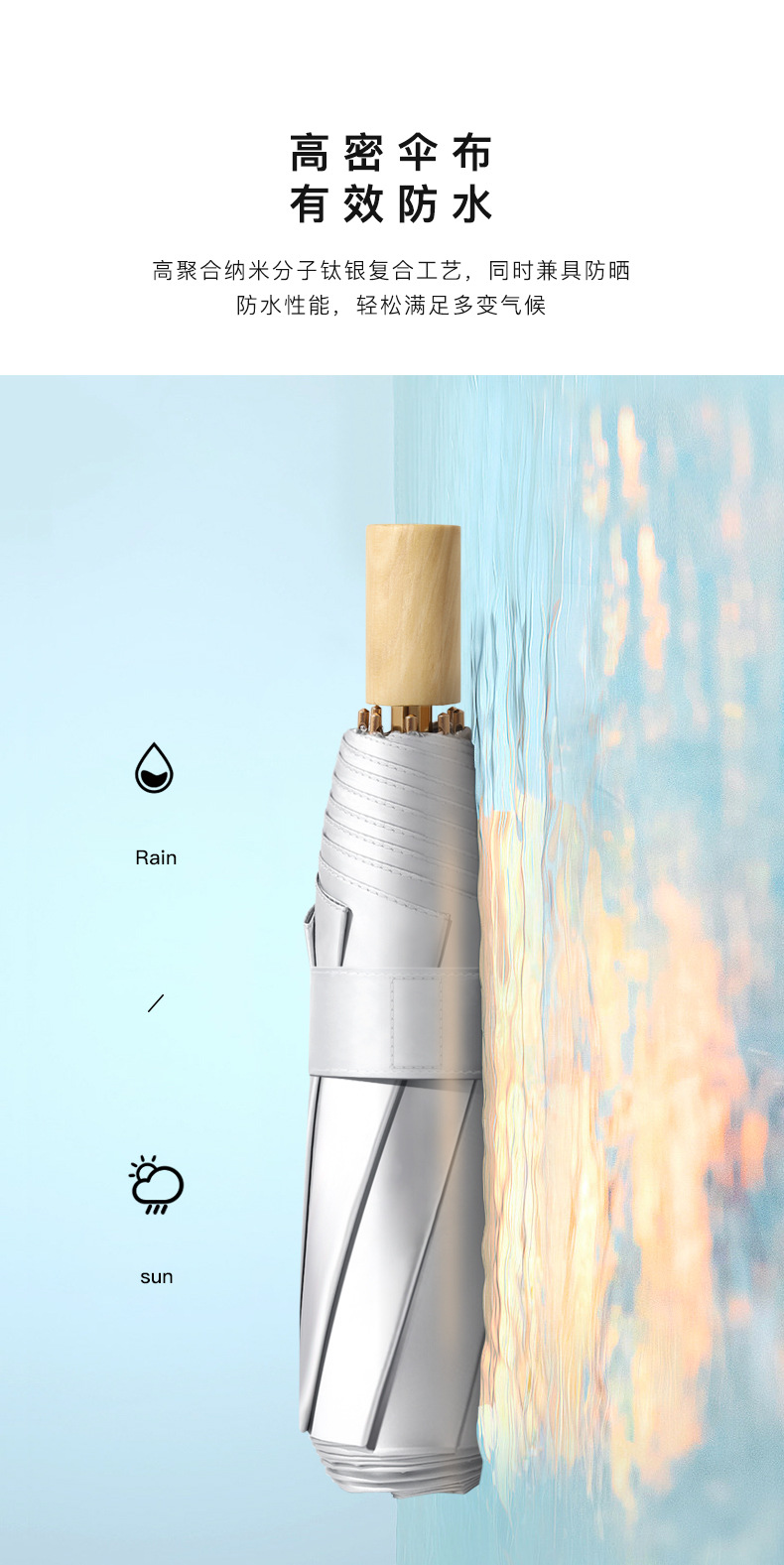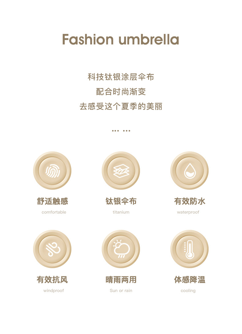 8 뼈 손으로 연 티타늄 실버 차양 우산 UV 보호 사용자 정의 써니 우산 그라디언트 우산