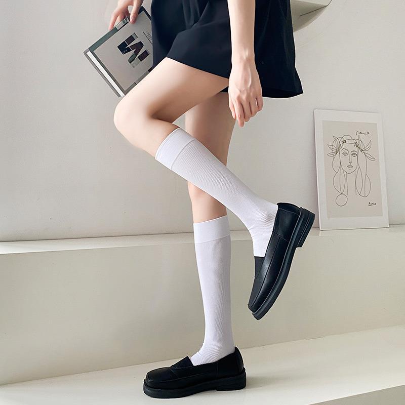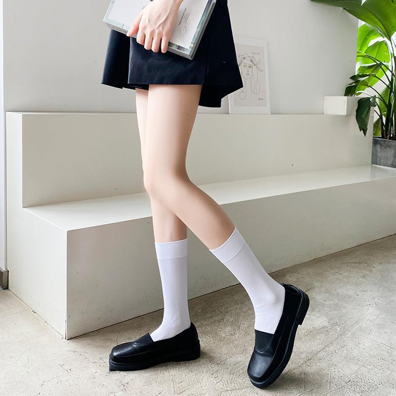 봄과 여름 대학 스타일 일본식 jk 스타일 흑백 단색 벨벳 실크 스타킹 여성용 디자인 감각 피트 약간의 압력 송아지스토어 가기