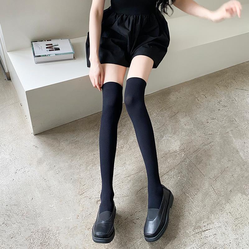 봄과 여름 대학 스타일 일본식 jk 스타일 흑백 단색 벨벳 실크 스타킹 여성용 디자인 감각 피트 약간의 압력 송아지