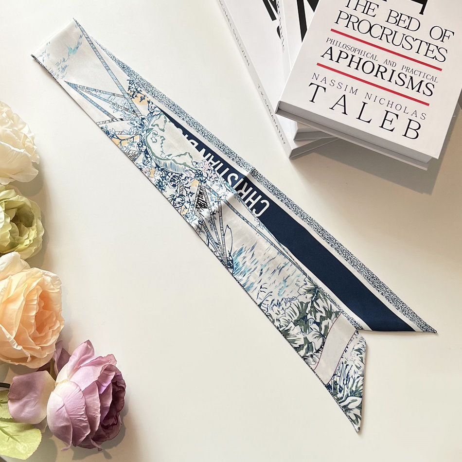 무한 꿈 2023 여름 새로운 실크 스카프 넥타이 가방 핸들 리본 작은 긴 실크 양면 밴드 헤어 밴드스토어 가기