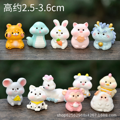 새로운 애니메이션 작은 동물 손으로 만든 인형 모델 조디악 돼지 개 인형 마이크로 풍경 데스크탑 장식 선물스토어 가기