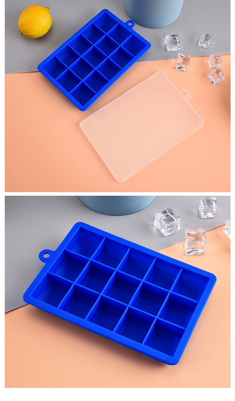 15 그램 식품 등급 실리콘 아이스 큐브 몰드 뚜껑 아이스 칵테일 쉐이크 아이스와 위스키 스퀘어 아이스 큐브 상자