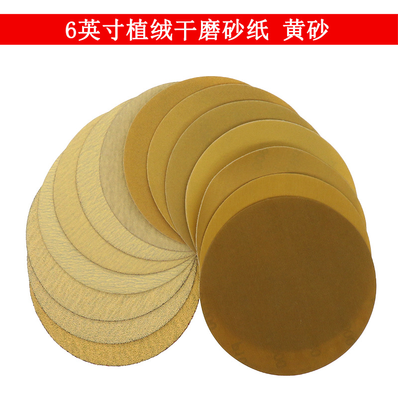 노란색 사포 6 인치 150mm 원형 디스크 노란색 사포 벨벳 자체 접착 플로킹 노란색 사포 금속 연마 연마 사포