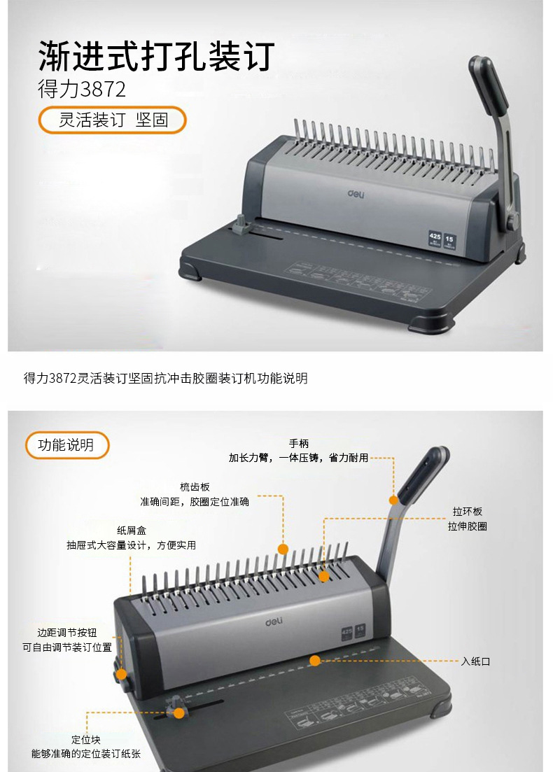 델리 빗 제본기 3870/3871/3872 파일 계약 텐더 A4 파일 클립 스트립 고무 링 펀칭기스토어 가기