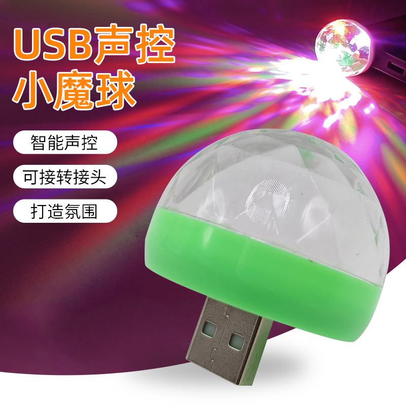 USB 작은 마법의 공 다채로운 음성 제어 자동차 디스코 디스코 빛 DJ 크리스탈 DJ 미니 무대 빛 분위기 디스코 빛스토어 가기