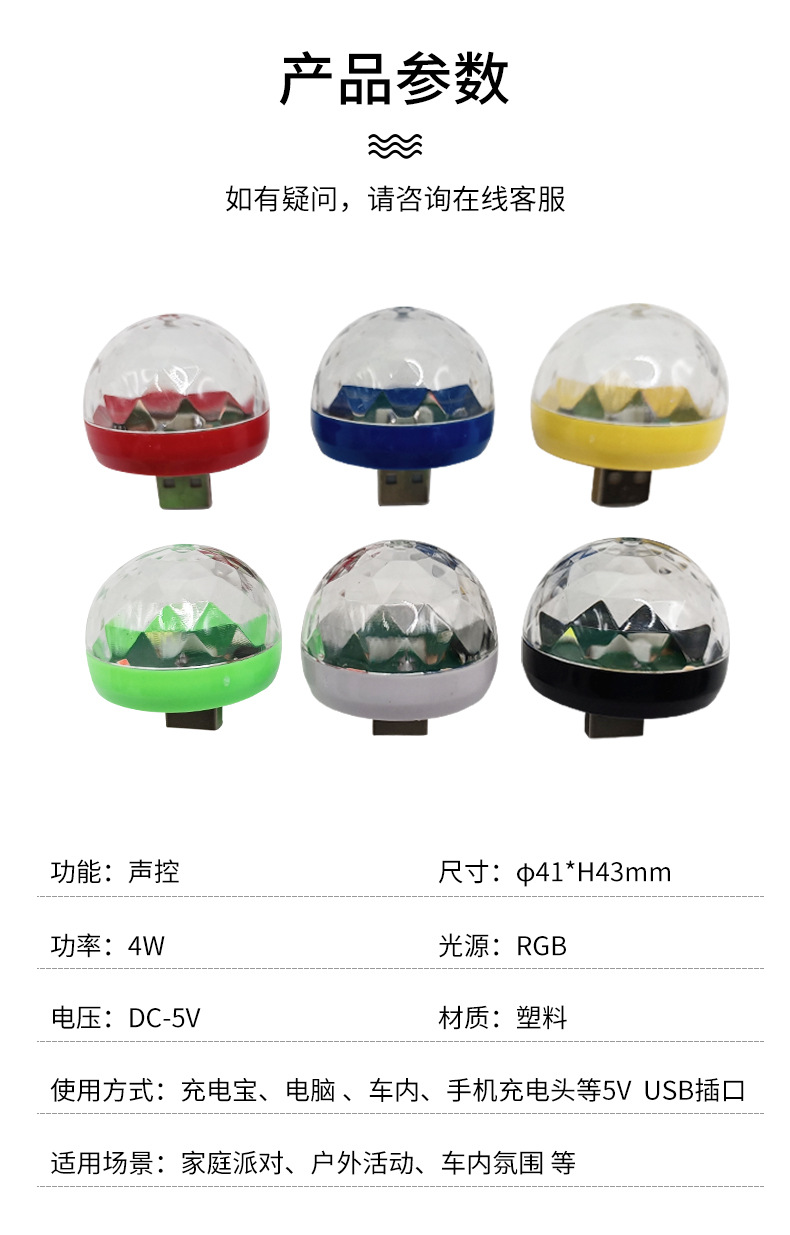 USB 작은 마법의 공 다채로운 음성 제어 자동차 디스코 디스코 빛 DJ 크리스탈 DJ 미니 무대 빛 분위기 디스코 빛