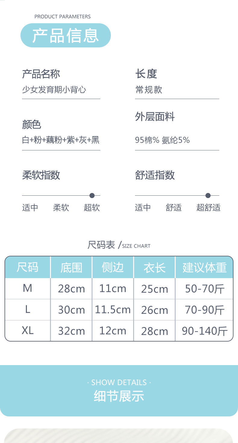 여아 속옷 개발 기간 초등학생 1 단계 카테고리 순면 11 세 7-18 어린 소녀 아동 조끼