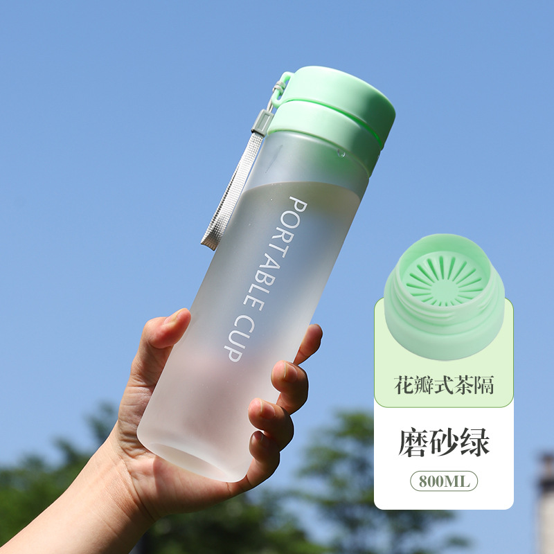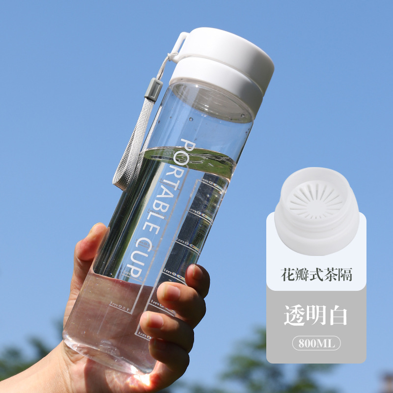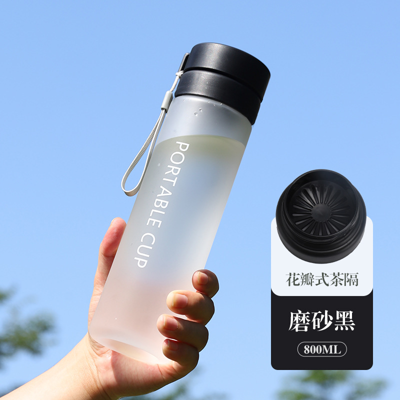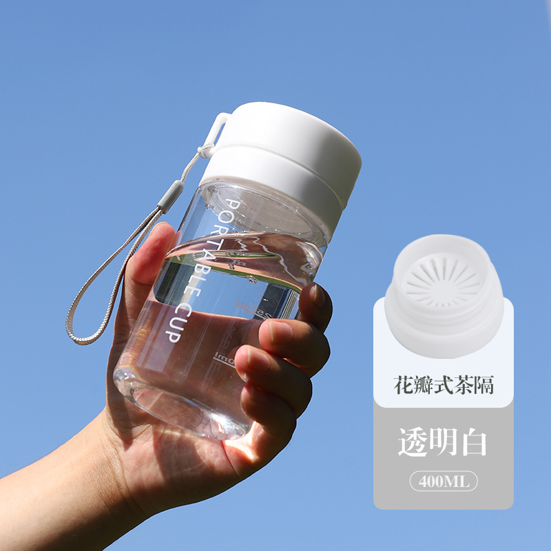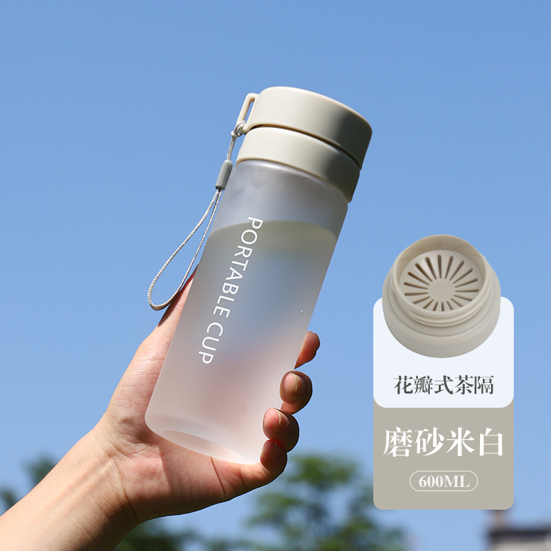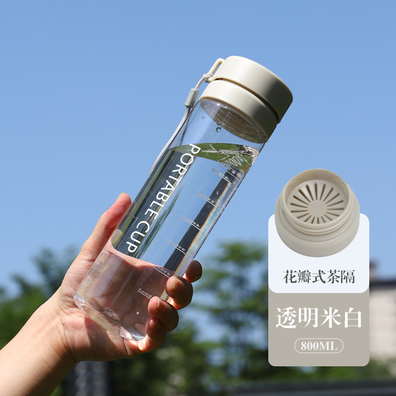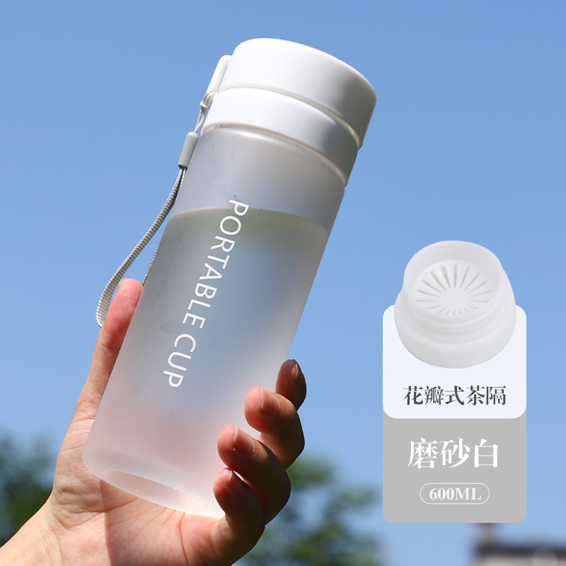 스포츠 물컵 도매, 야외용 대용량 반투명 플라스틱 컵, 투명 플라스틱 휴대용 로프가 달린 차 여과 컵