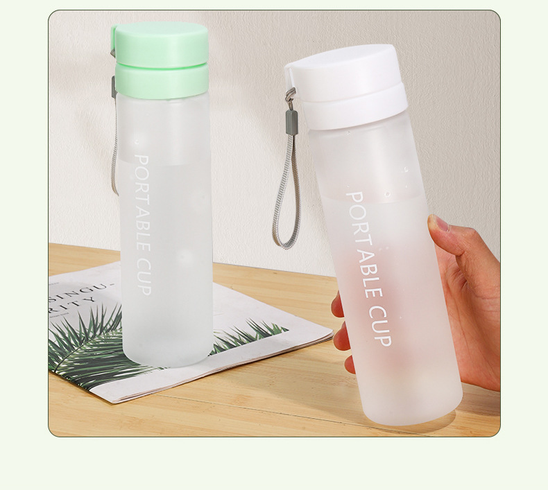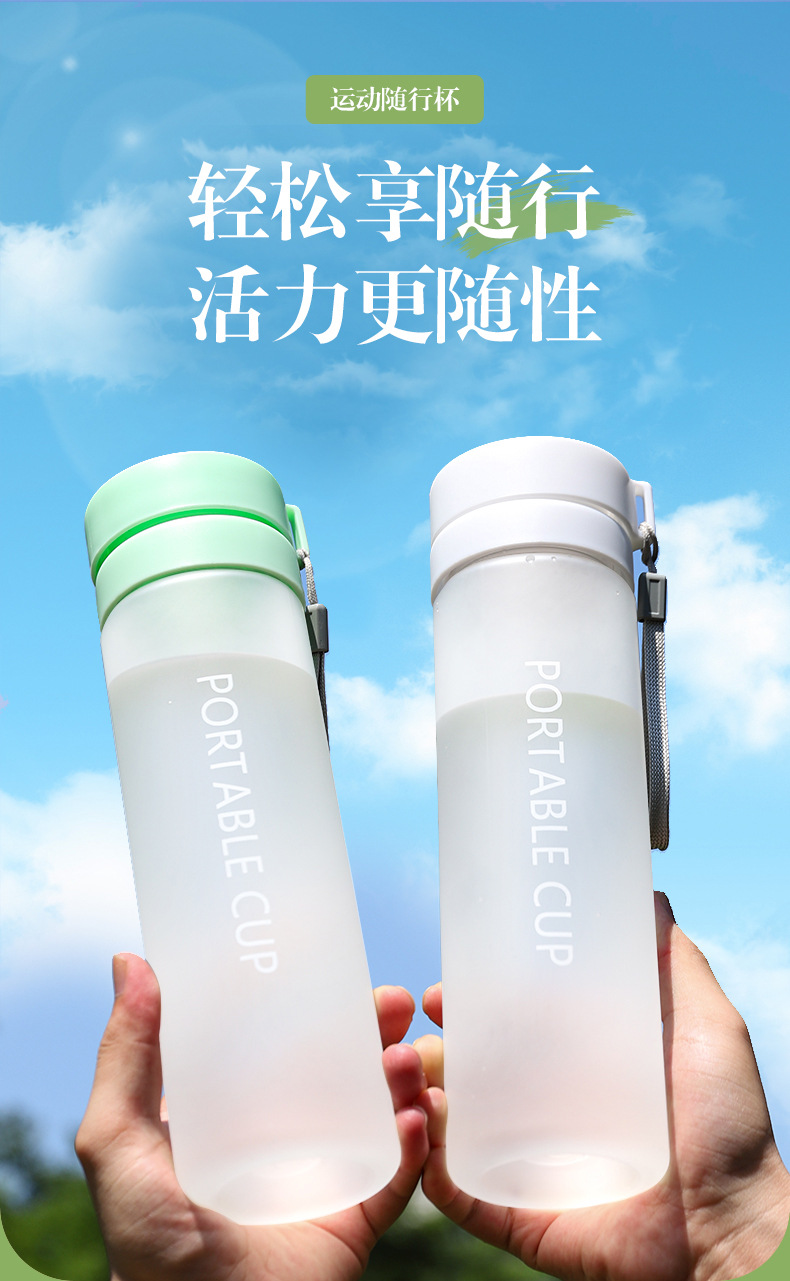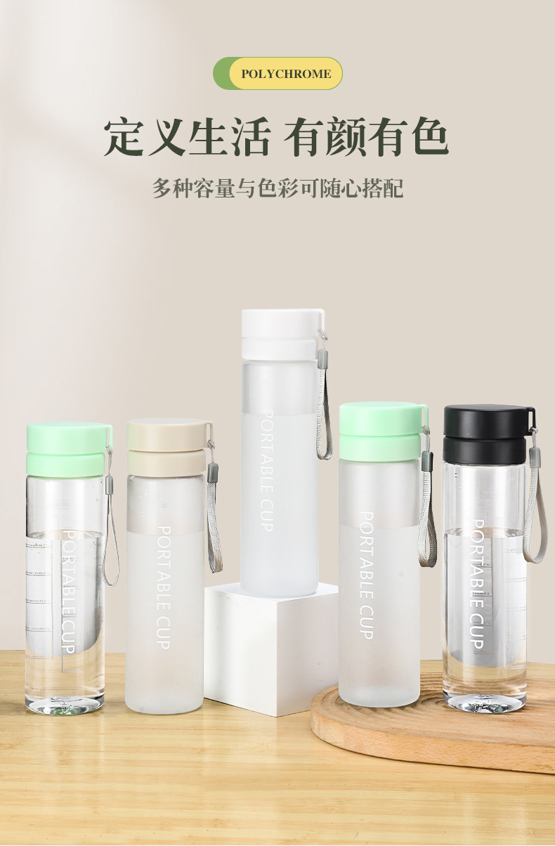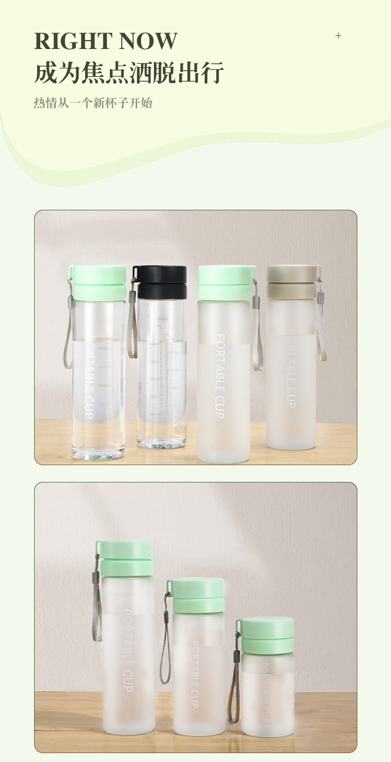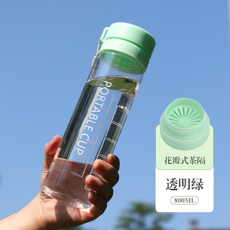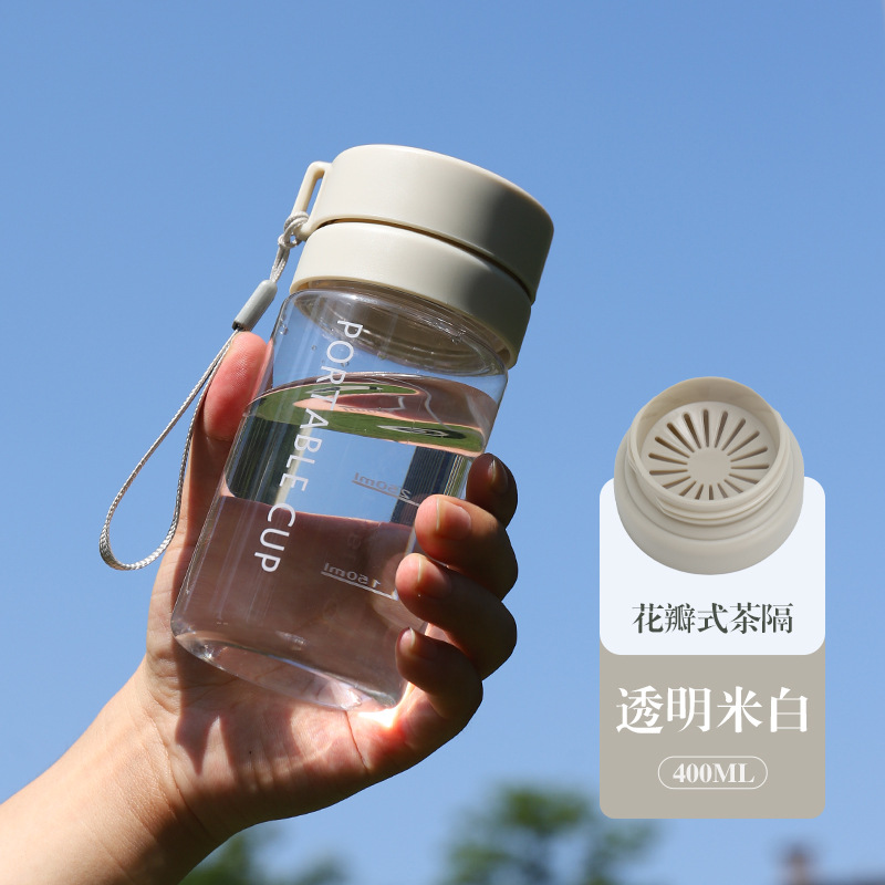 스포츠 물컵 도매, 야외용 대용량 반투명 플라스틱 컵, 투명 플라스틱 휴대용 로프가 달린 차 여과 컵