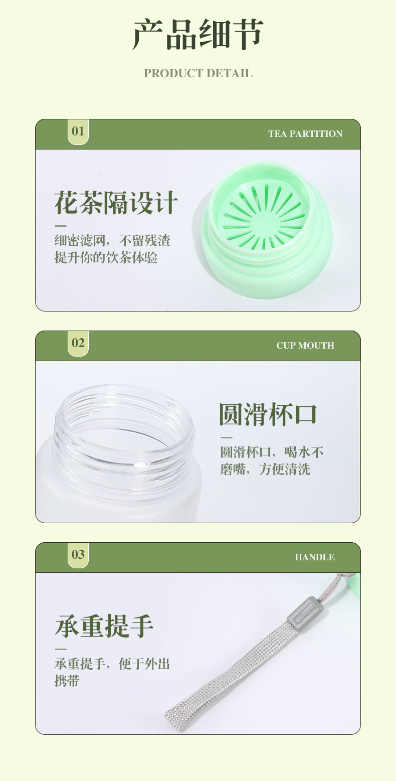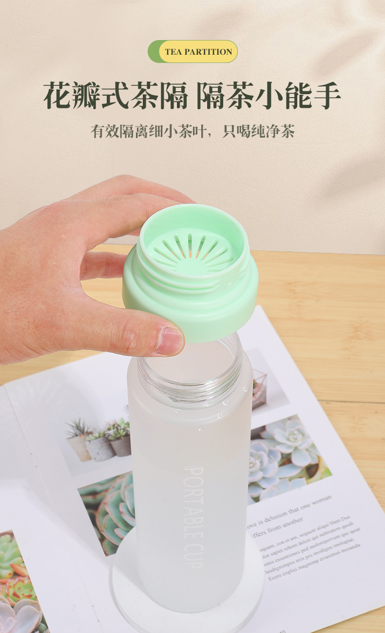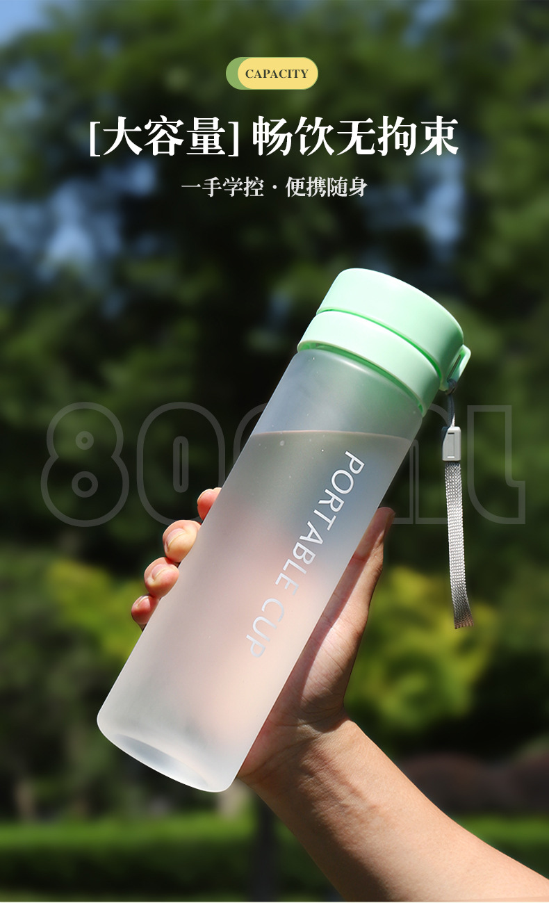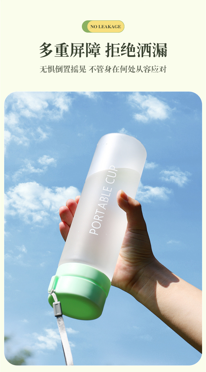 스포츠 물컵 도매, 야외용 대용량 반투명 플라스틱 컵, 투명 플라스틱 휴대용 로프가 달린 차 여과 컵