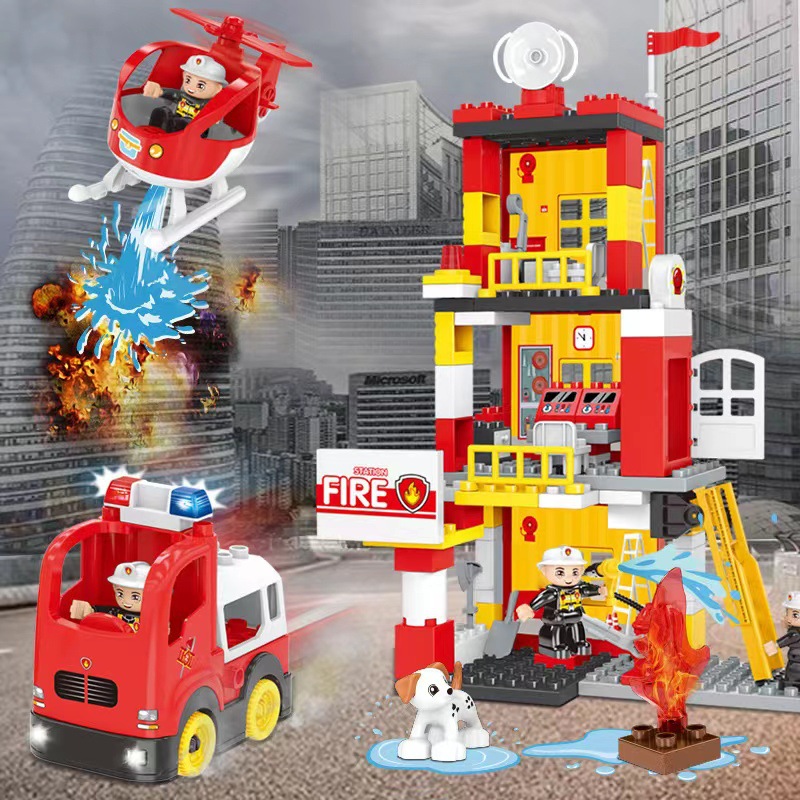5 성급 어린이 장난감 큰 입자 조립 소방 경찰서 애완 동물 가게 집 장면 남녀 퍼즐 빌딩 블록