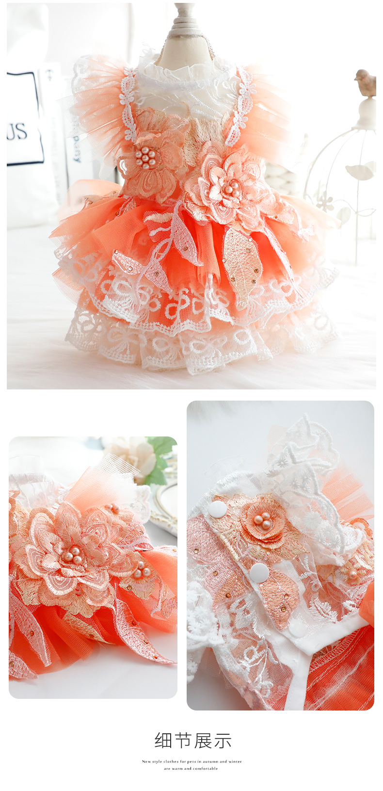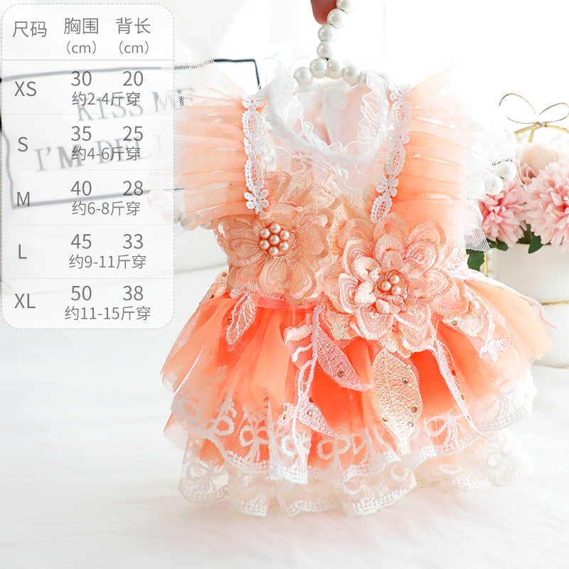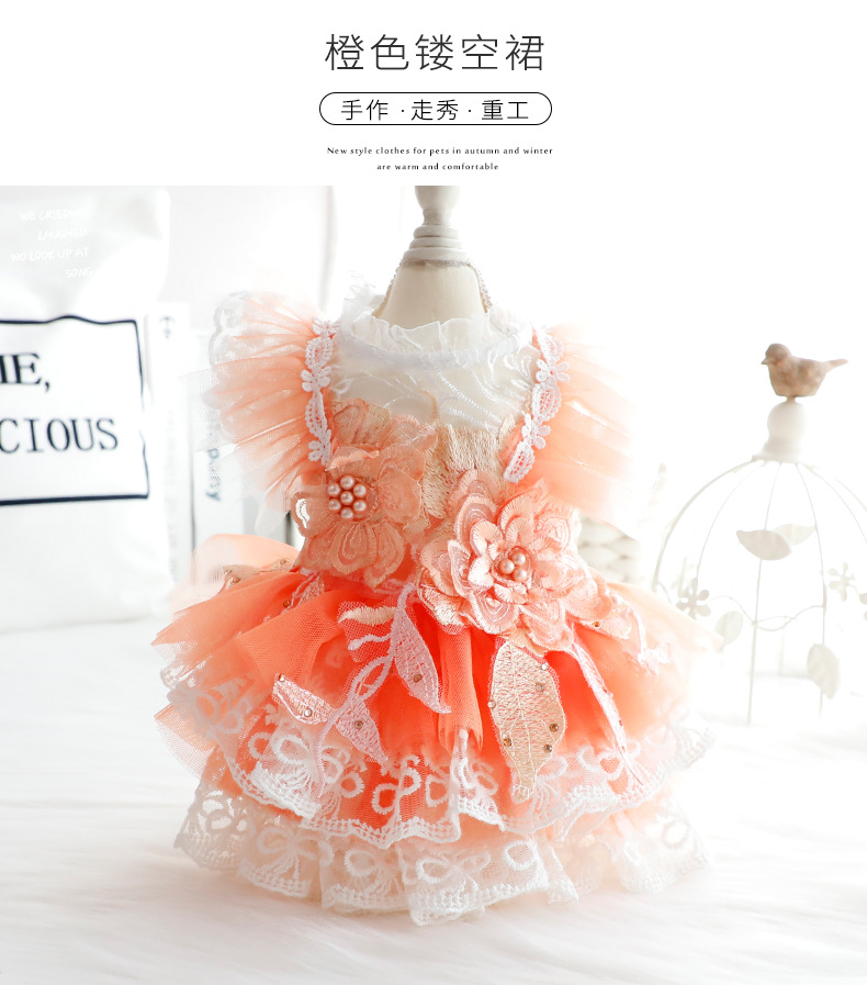 개 옷 여름 얇은 고양이 공주 원피스 오렌지 중공 원피스 결혼식 원피스 작은 개 애완 동물 3662 도매스토어 가기
