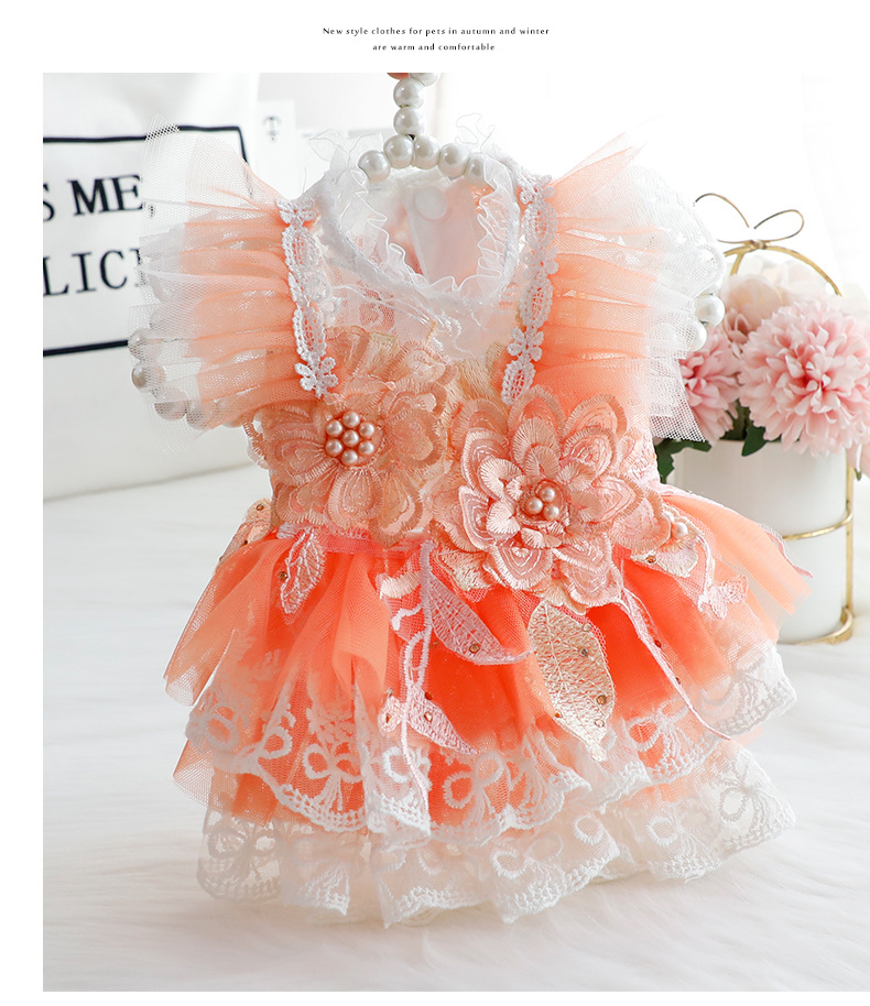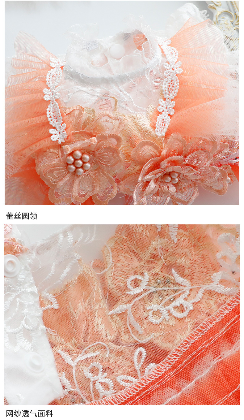 개 옷 여름 얇은 고양이 공주 원피스 오렌지 중공 원피스 결혼식 원피스 작은 개 애완 동물 3662 도매