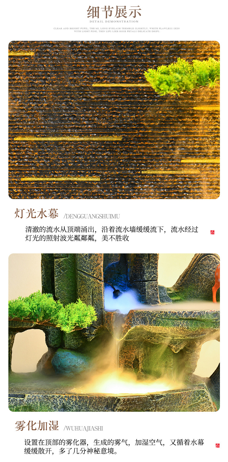사무실 바위 유수 장식품 분수 물 커튼 벽 어항 조경 거실 칸막이 순환 물 장식 스크린