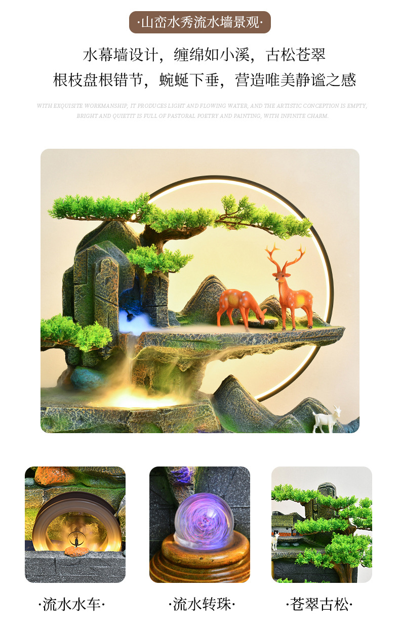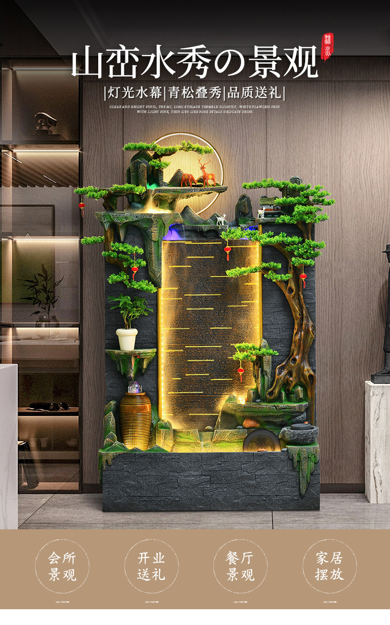 사무실 바위 유수 장식품 분수 물 커튼 벽 어항 조경 거실 칸막이 순환 물 장식 스크린스토어 가기