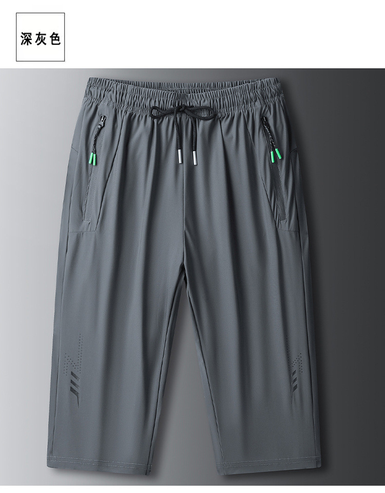 대형 아이스 실크 여름 반바지 남성용 카프리 바지 유행 느슨한 캐주얼 스포츠 5 점 비치 바지 대형 바지스토어 가기
