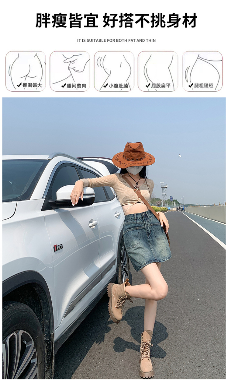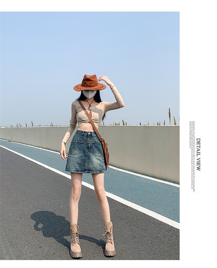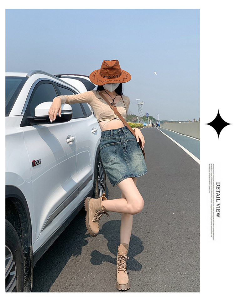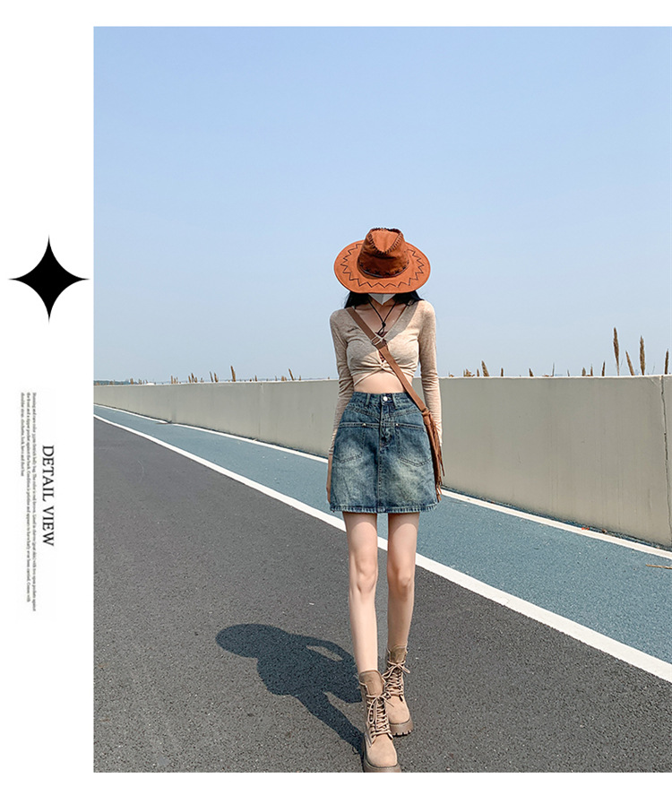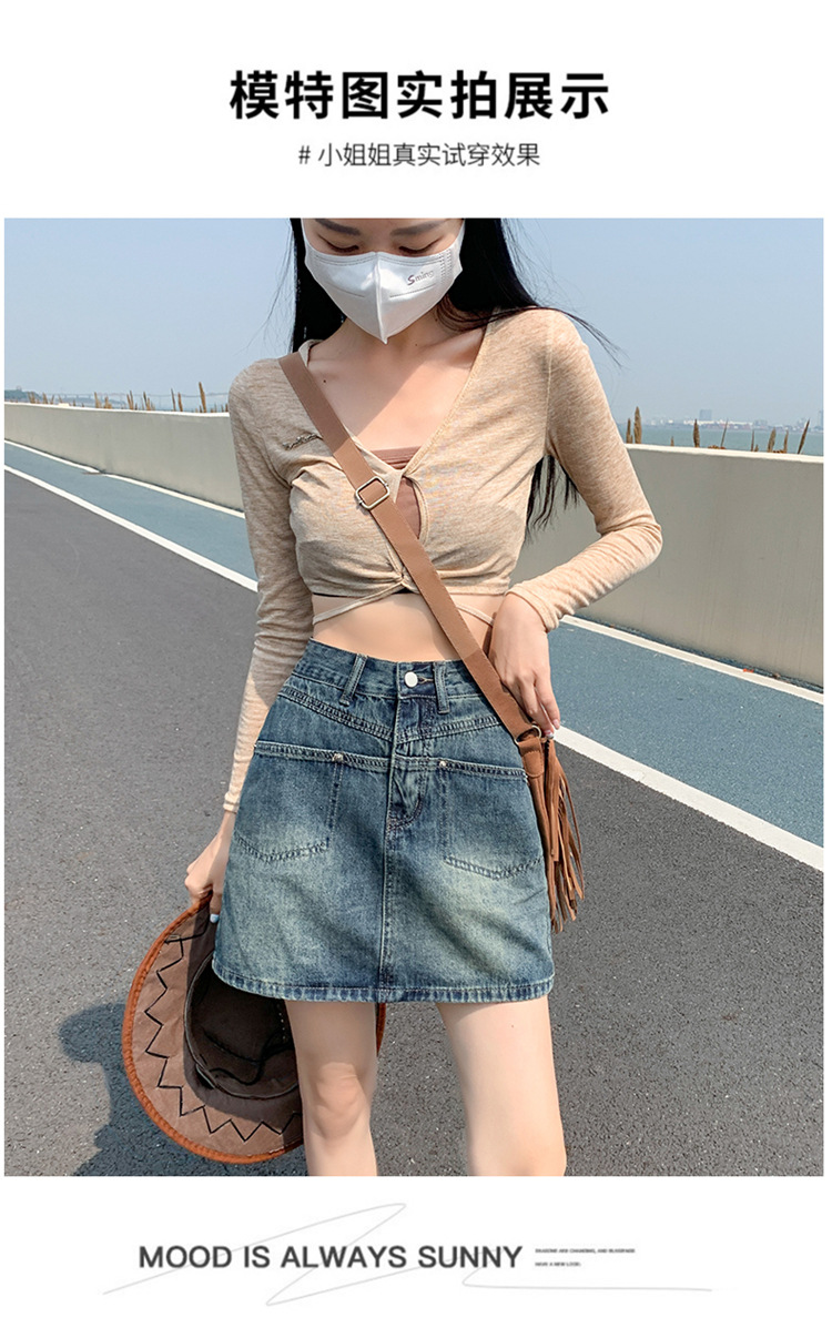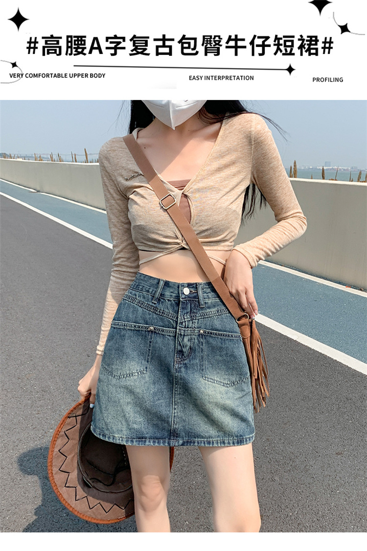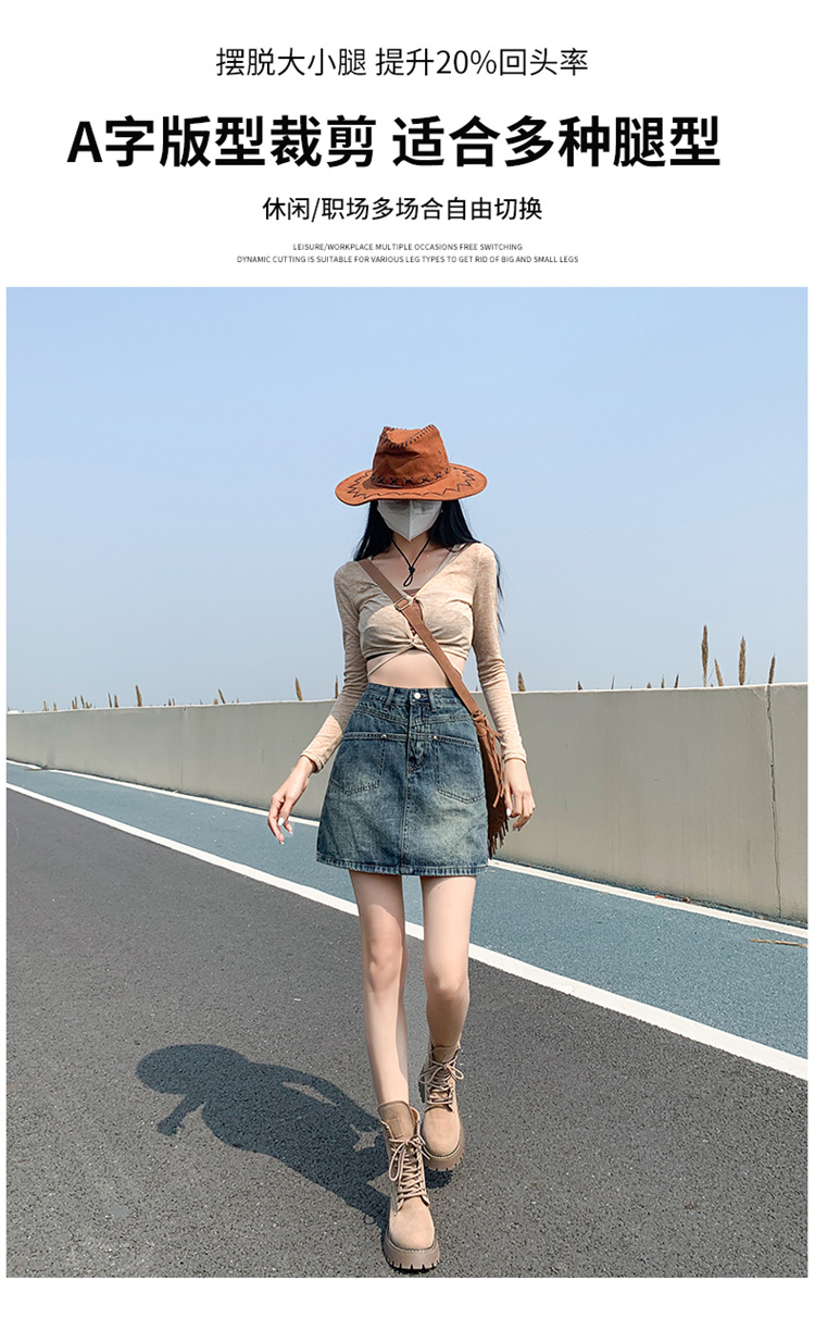 포켓 디자인 스플릿 데님 스커트 여성의 트렌디 한 빈티지 하이 웨이스트 틈새 살 커버 A 라인 엉덩이 반 길이 스커트스토어 가기