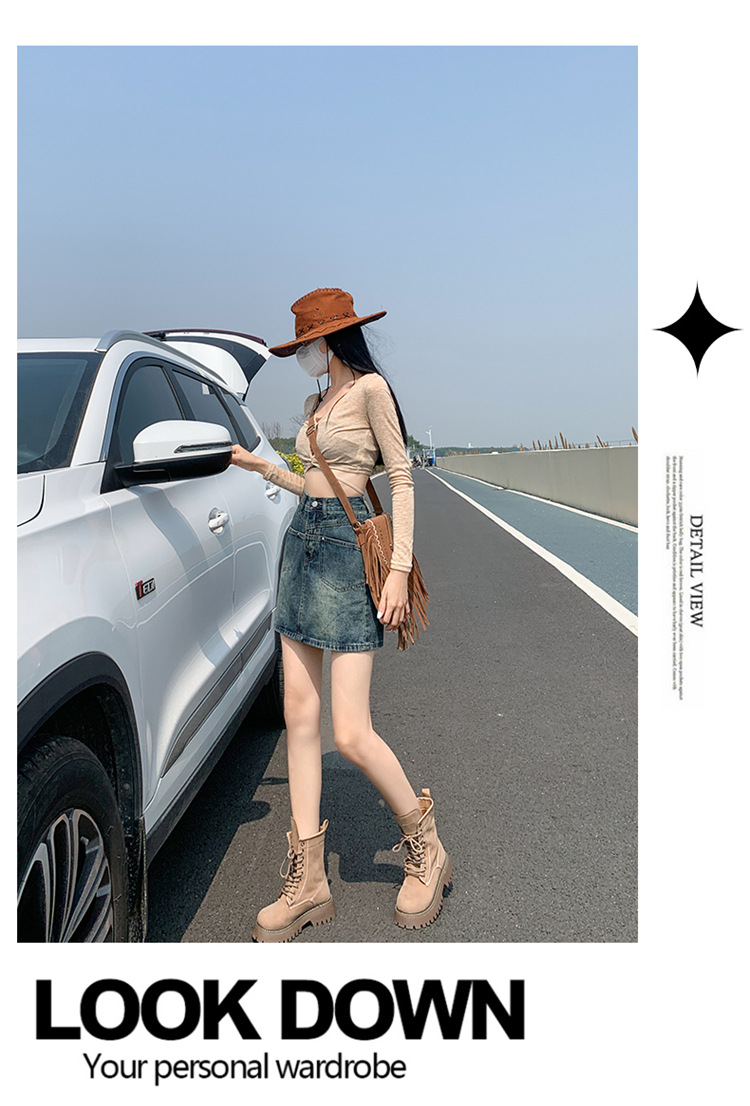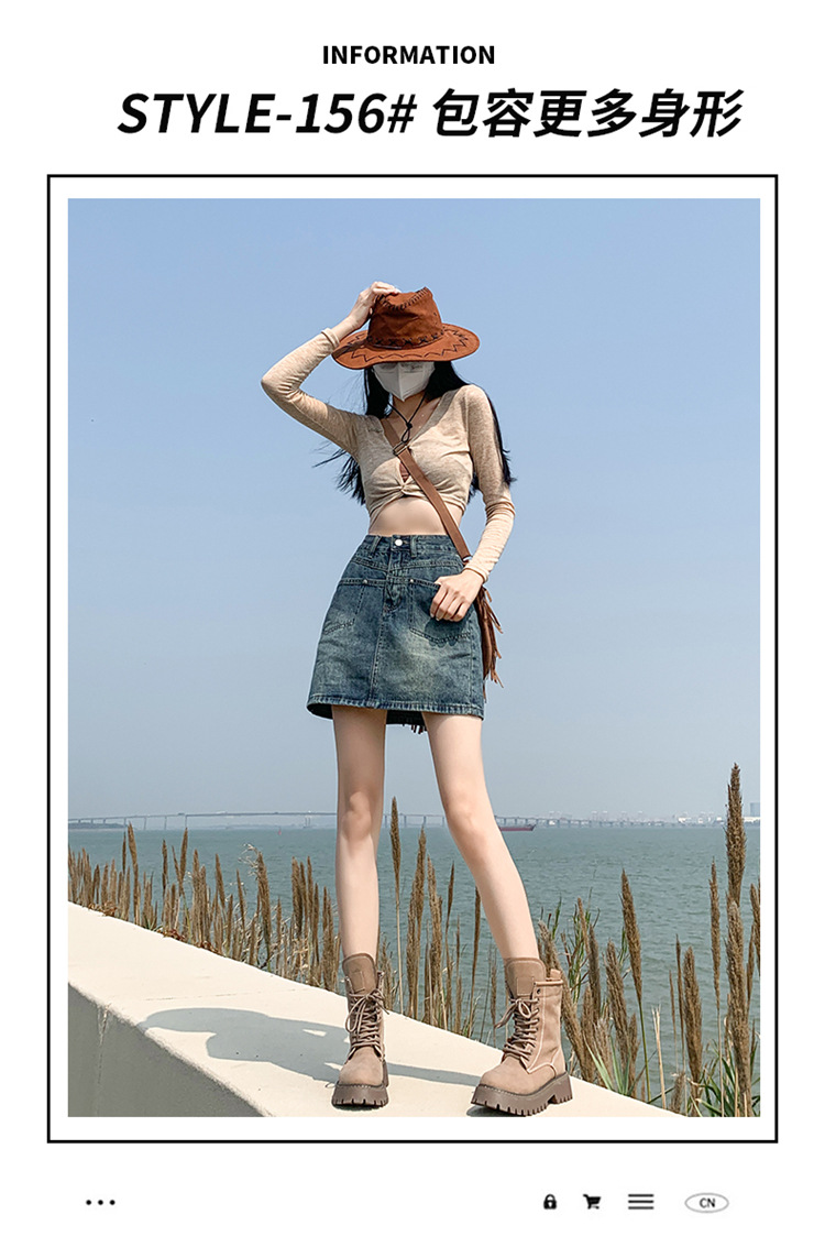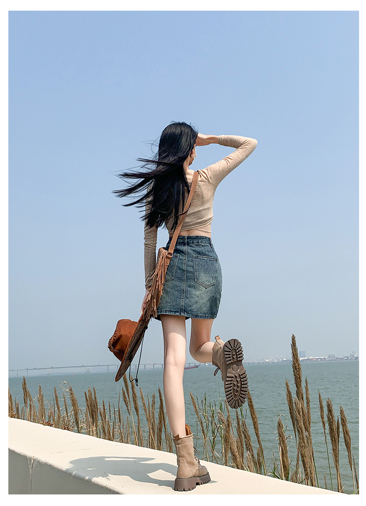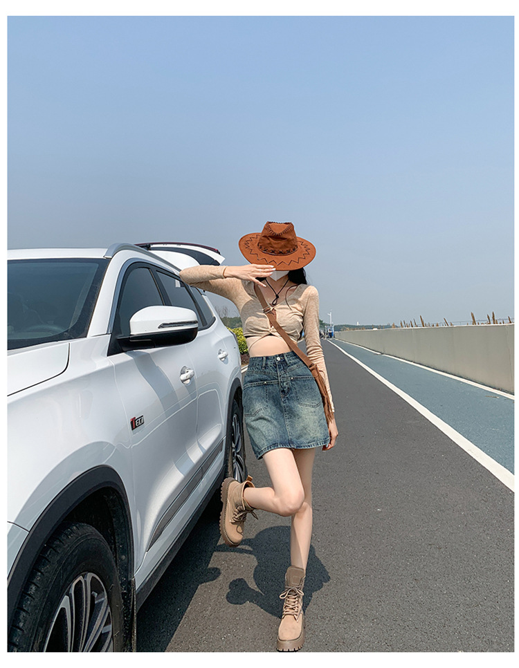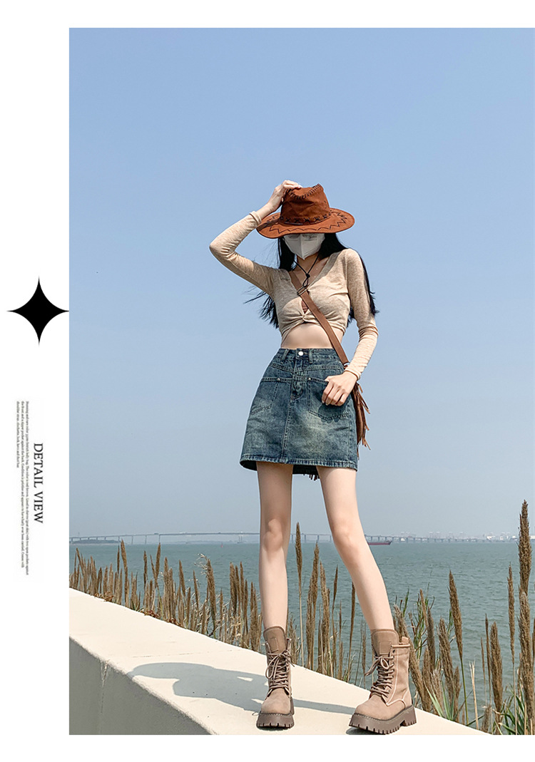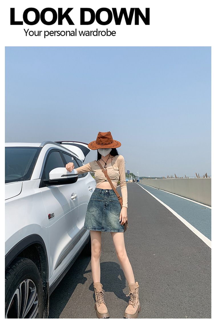 포켓 디자인 스플릿 데님 스커트 여성의 트렌디 한 빈티지 하이 웨이스트 틈새 살 커버 A 라인 엉덩이 반 길이 스커트스토어 가기