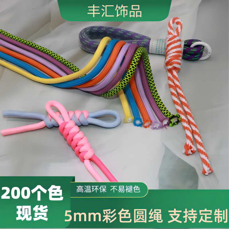 원천 공장 200가지 색상 5mm 원형 끈 스웨트셔츠 끈 폴리에스터 저탄성 끈 신발끈 휴대폰 끈 조임끈스토어 가기