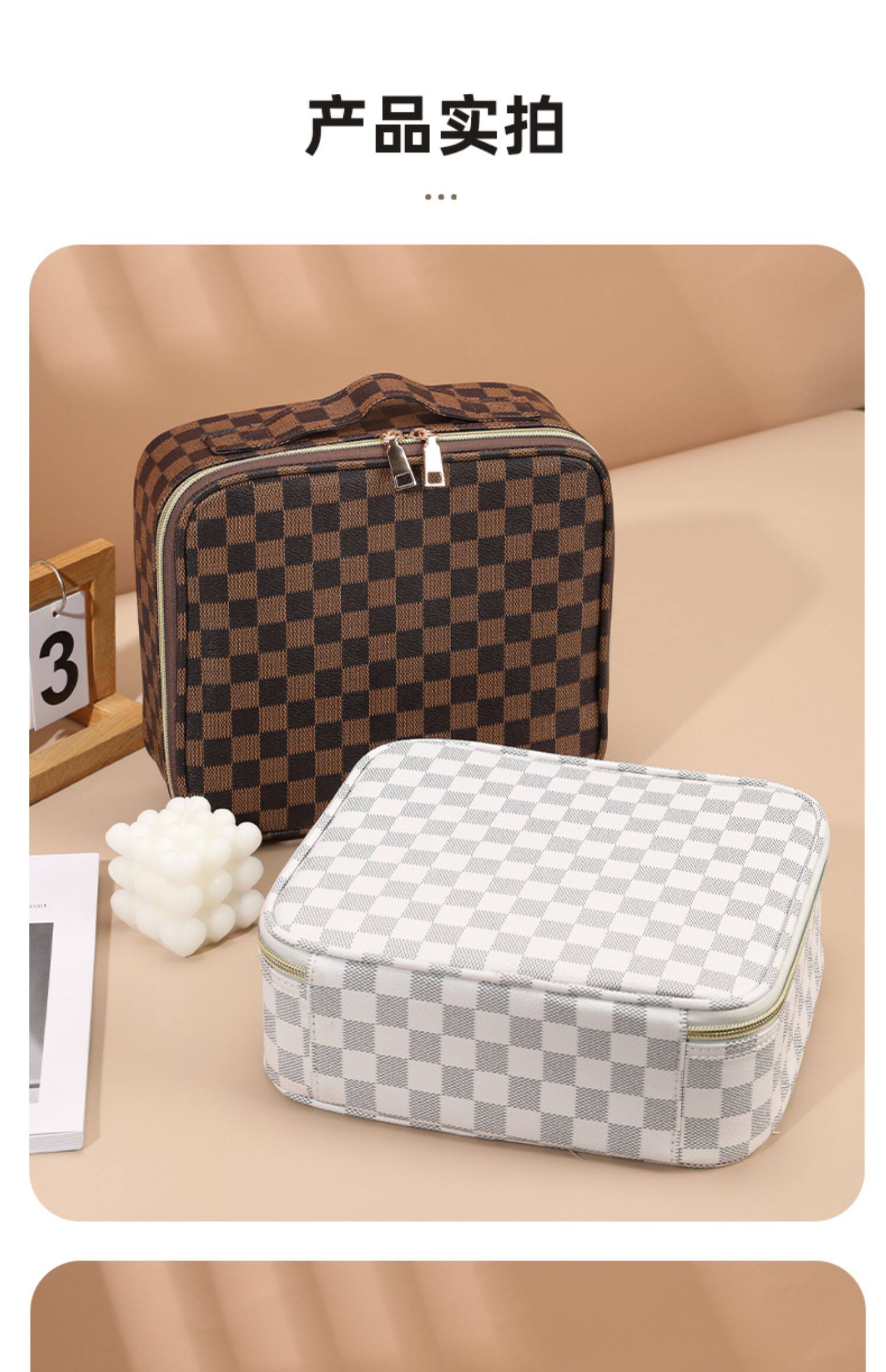 대용량 화장품 가방, 메이크업 브러쉬, 여성용 화장품 수납함, 분리형, 고급스러운 느낌, 휴대용 여행용, 인터넷 유명인 세면도구