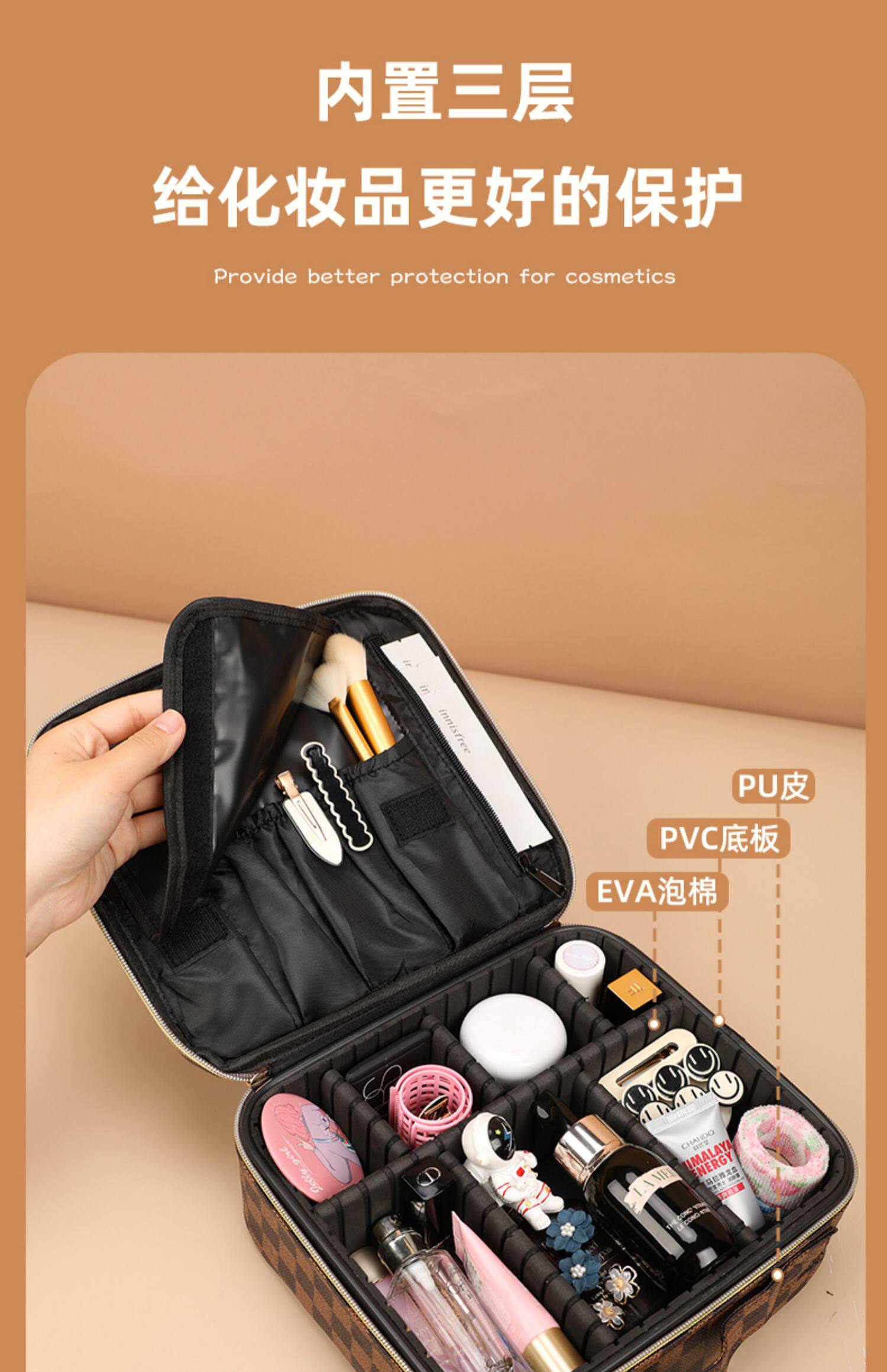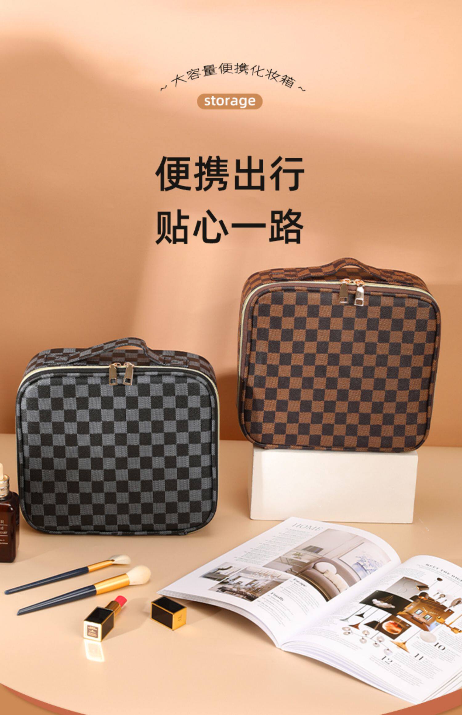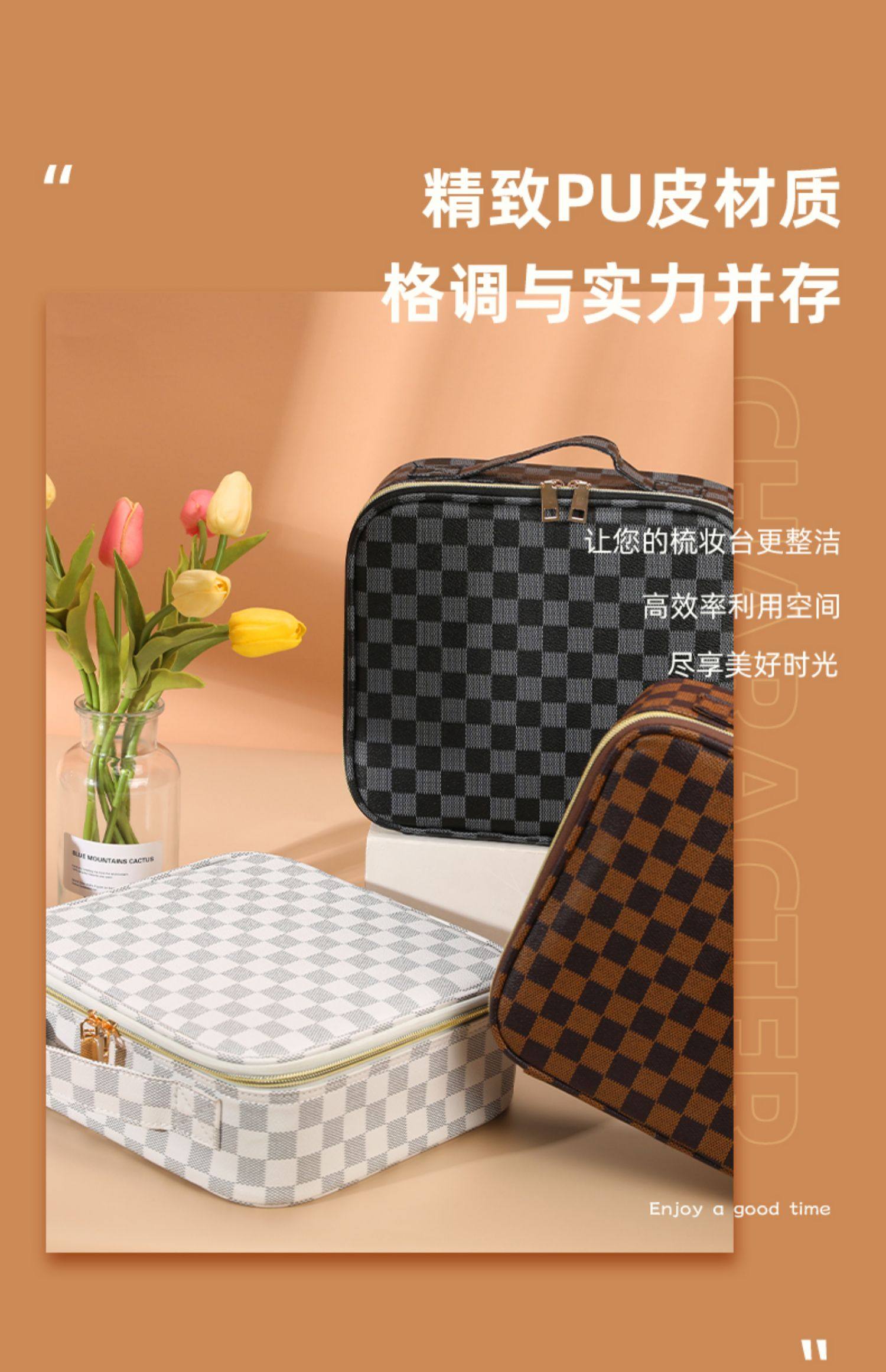 대용량 화장품 가방, 메이크업 브러쉬, 여성용 화장품 수납함, 분리형, 고급스러운 느낌, 휴대용 여행용, 인터넷 유명인 세면도구스토어 가기