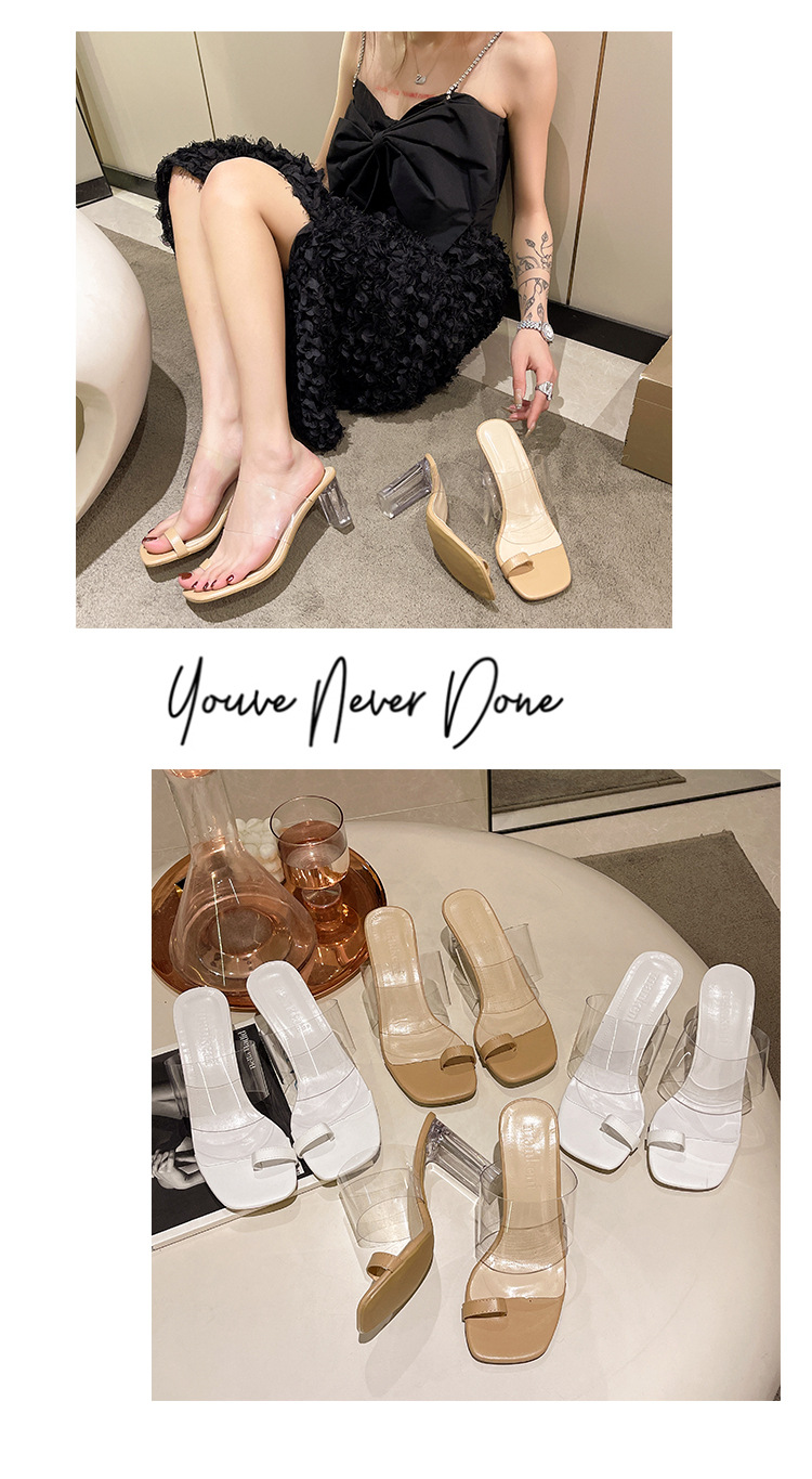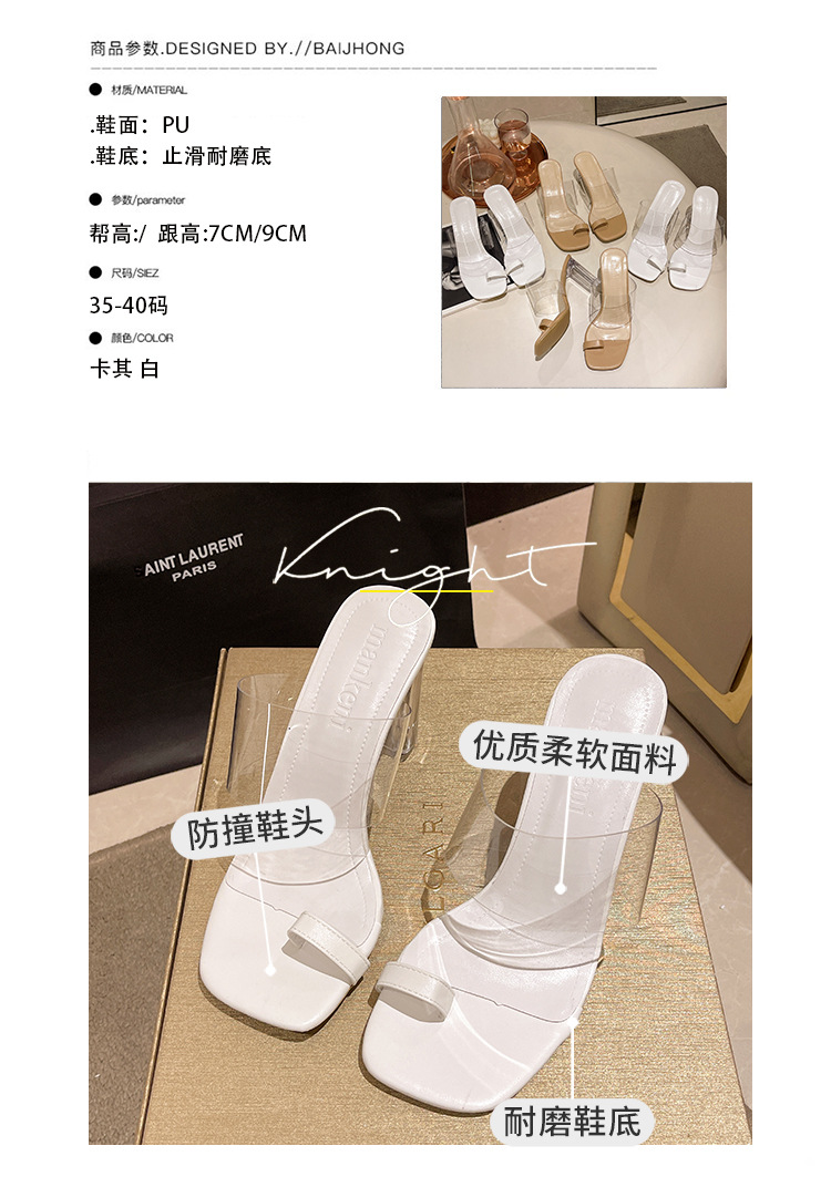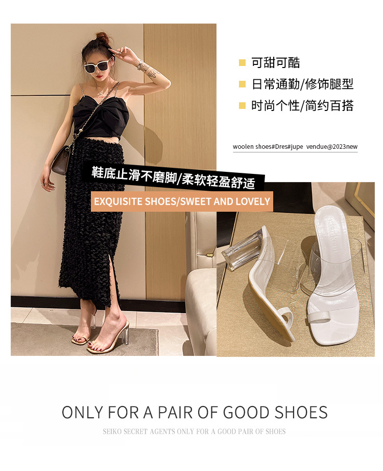 여성용 투명 청키 힐 슬리퍼 여름 야외 착용 2023 여름 새로운 사각형 발가락 요정 하이힐 패션 우아한 샌들스토어 가기