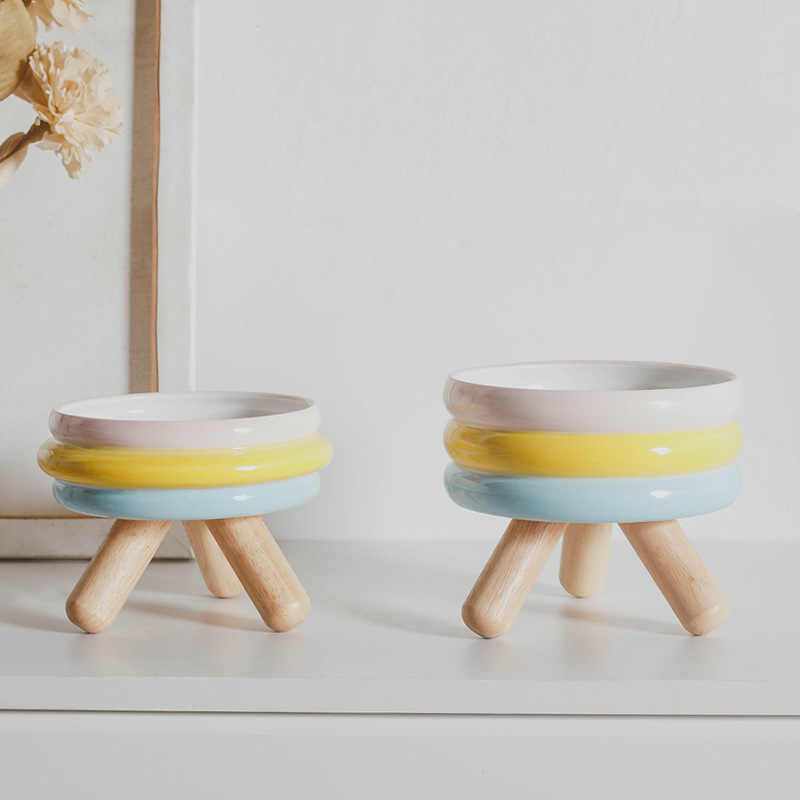 Gulu 그릇 애완 동물 음식 그릇 물 그릇 고양이 그릇 세라믹 다채로운 고양이와 개 먹이 그릇 고양이 음식 분지 분할 높은 목 보호스토어 가기