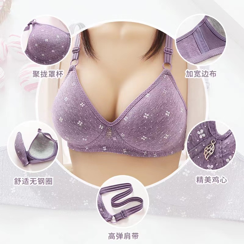 중년 및 고령자를위한 A7 부드러운 비 무테없는 어머니 3-가슴 브래지어 피부 친화적 인 면 플러스 사이즈 광택 인쇄 크로스 보더 속옷