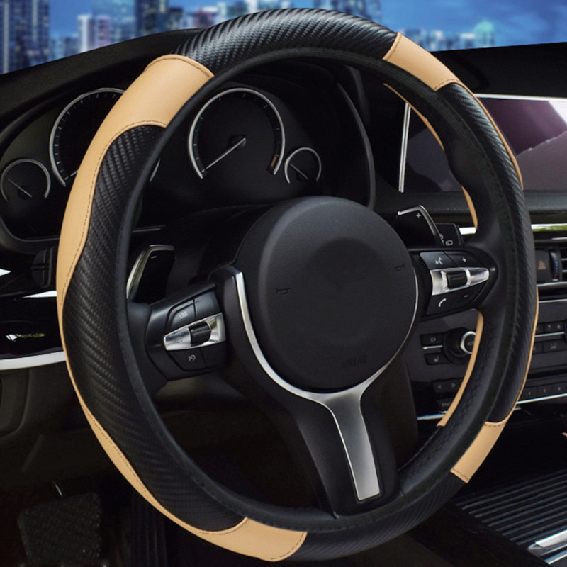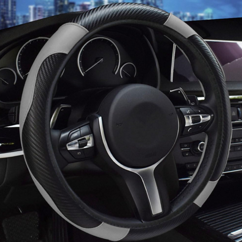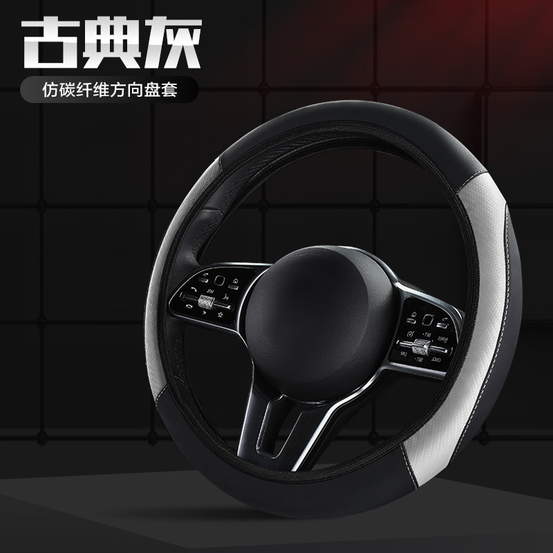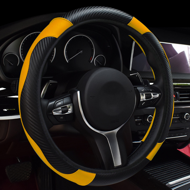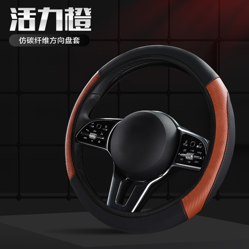 신형 자동차 핸들 커버 사계절 만능 탄성 비 내부 링 미끄럼 방지 가죽 탄소 섬유 크로스 보더 폭발 자동차 핸들 커버