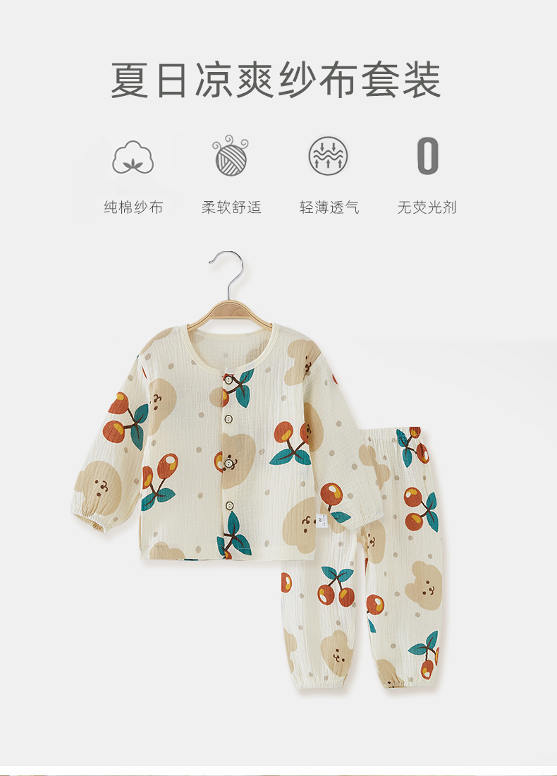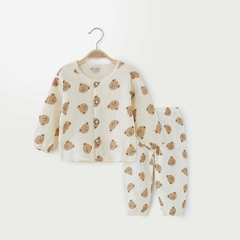 어린이 잠옷 여름 얇은 유형 A 순면 분할 긴 소매 아기 에어컨 옷 세트 속옷 홈스토어 가기