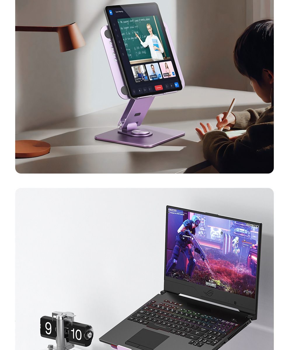 높이 조절이 가능한 신형 노트북 스탠드, 접이식 및 360도 회전 가능, 열 방출 기능 ° 회전식 데스크탑 태블릿 노트북 스탠드