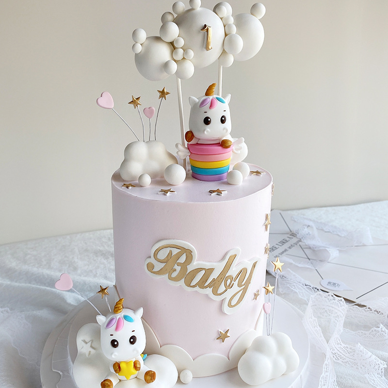 꿈 테마 생일 케이크 장식 인형 만화 귀여운 무지개 별 유니콘 부드러운 접착제 장식품스토어 가기