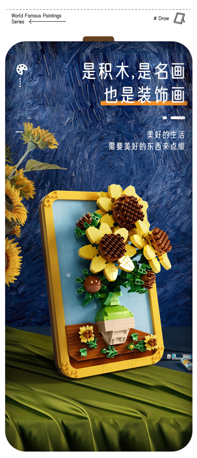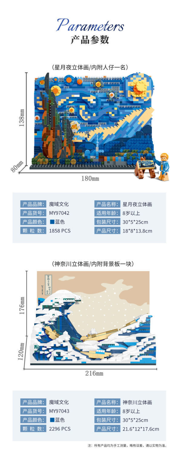 매직 MY97042-43 반 고흐 별이 빛나는 나가와 서핑 세계적으로 유명한 그림 신 빌딩 블록 마이크로 드릴 작은 입자 도매스토어 가기