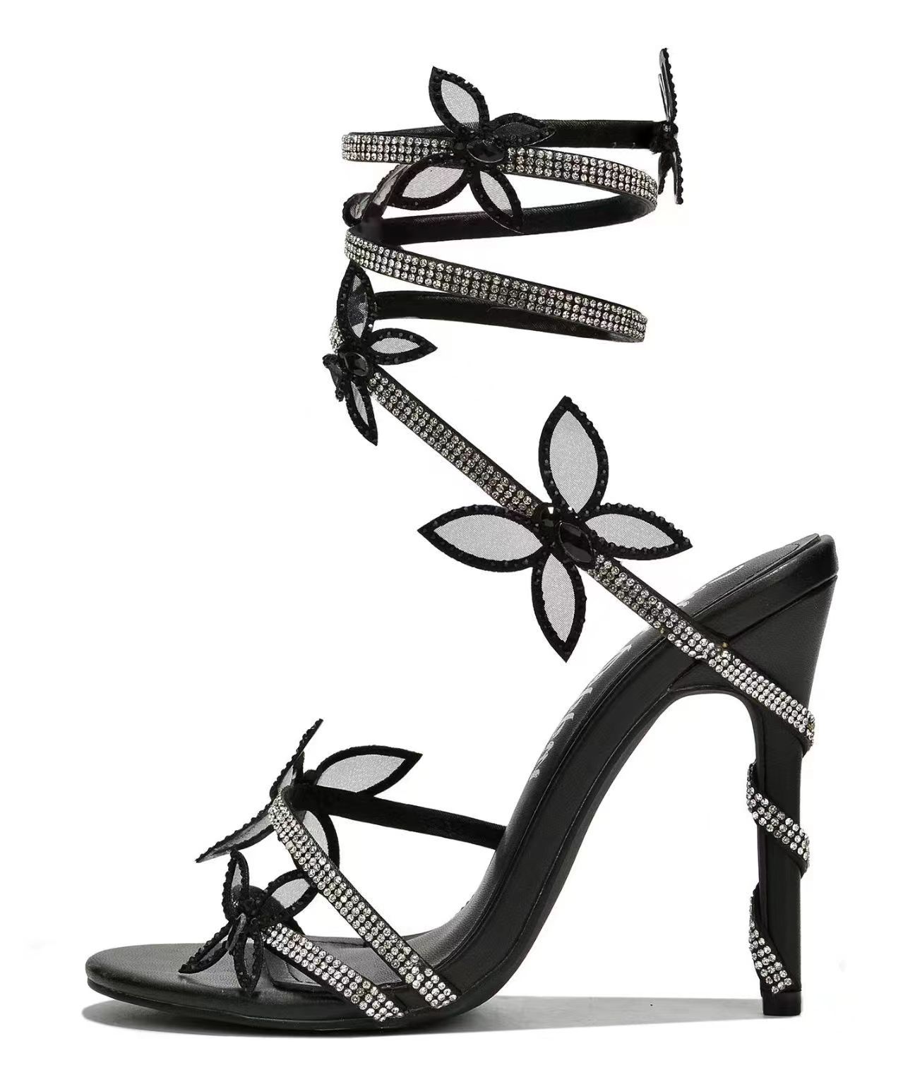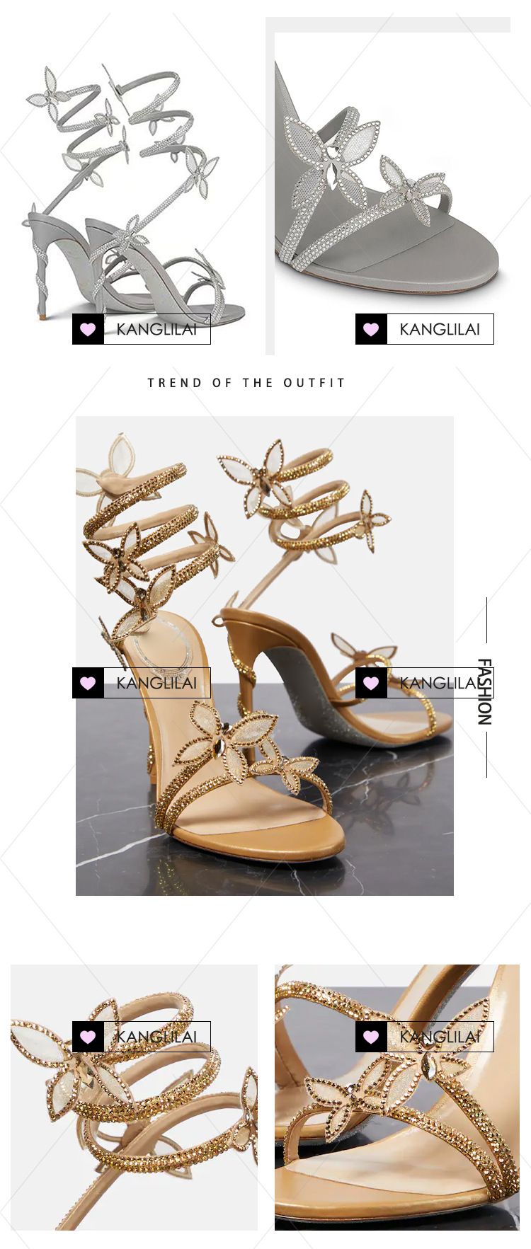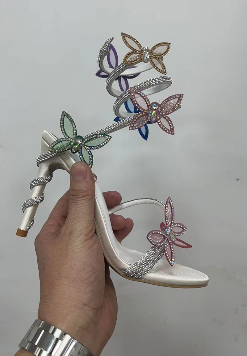 크로스 보더 팩토리 봄과 여름 새로운 rc 뱀 나비 다이아몬드 꽃 얇은 뒤꿈치 로마 샌들 부츠 유럽과 미국 연회 여성 신발스토어 가기