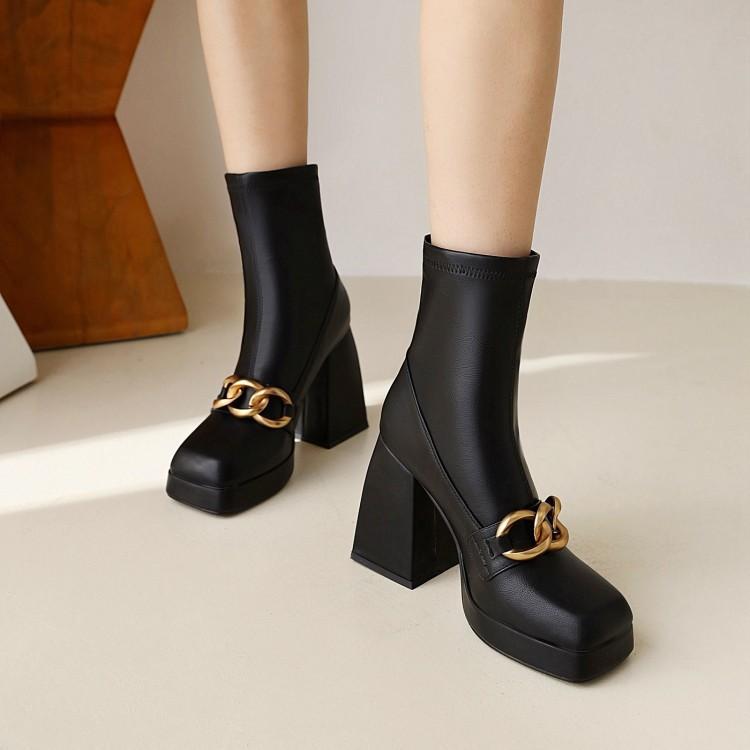 23 새로운 짧은 부츠 여성용 봄과 가을 싱글 부츠 슬리밍 하이힐 스트레치 부츠 프랑스 작은 짧은 부츠 두꺼운 굽 짧은 스키니 부츠