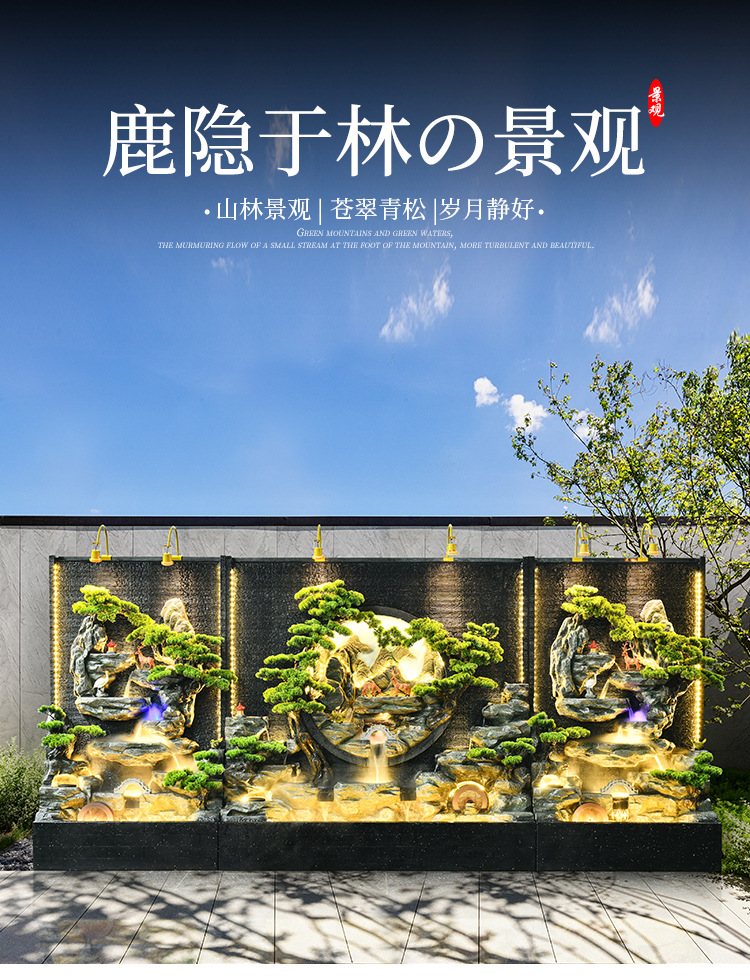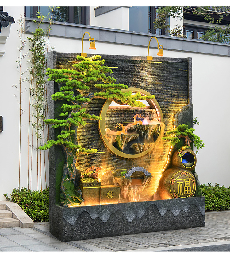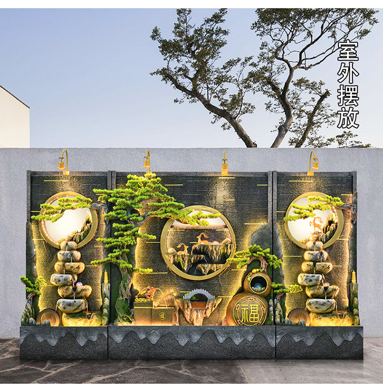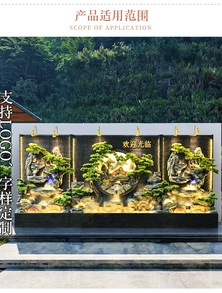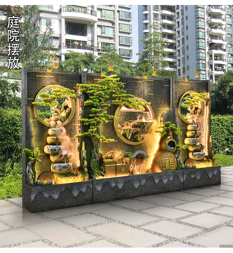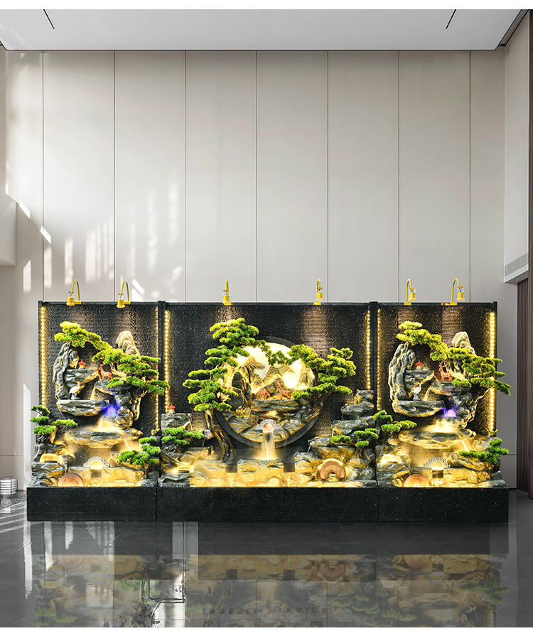 워터 커튼 월 유영 워터 스크린 안뜰 바위 물고기 연못 분수 풍경 거실 정원 사무실 내외부 장식 장식품