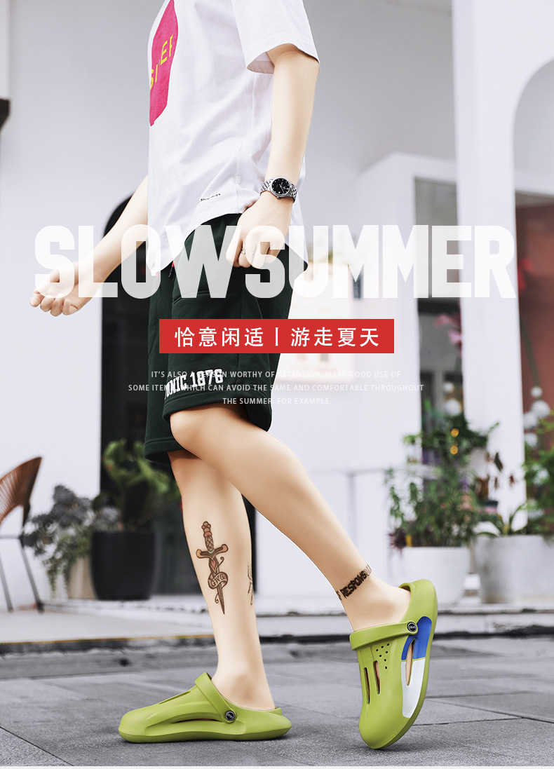 2023 새로운 구멍 신발 남자 여름 야외 성인 미끄럼 방지 비치 신발 샌들 운전 남성 야외 슬리퍼스토어 가기
