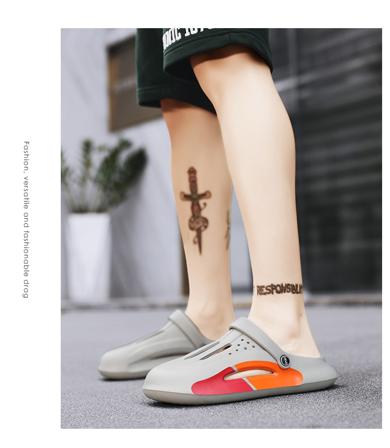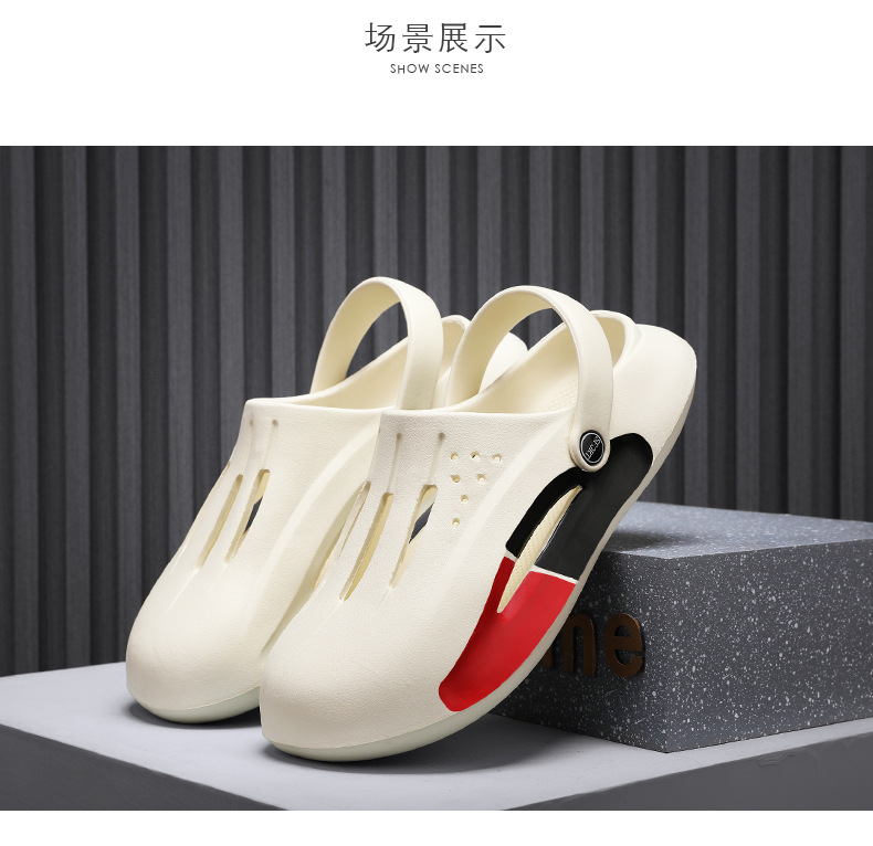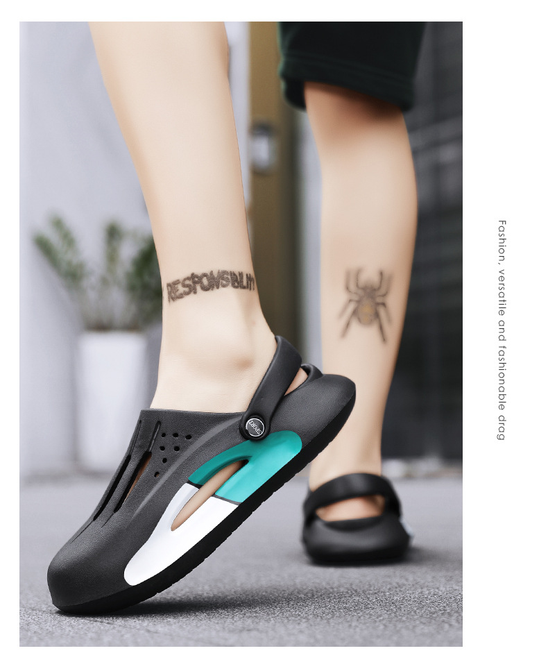 2023 새로운 구멍 신발 남자 여름 야외 성인 미끄럼 방지 비치 신발 샌들 운전 남성 야외 슬리퍼