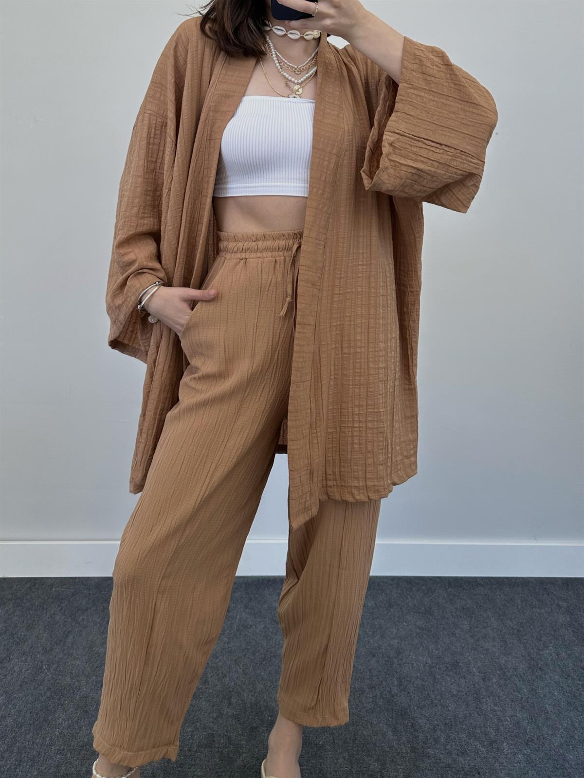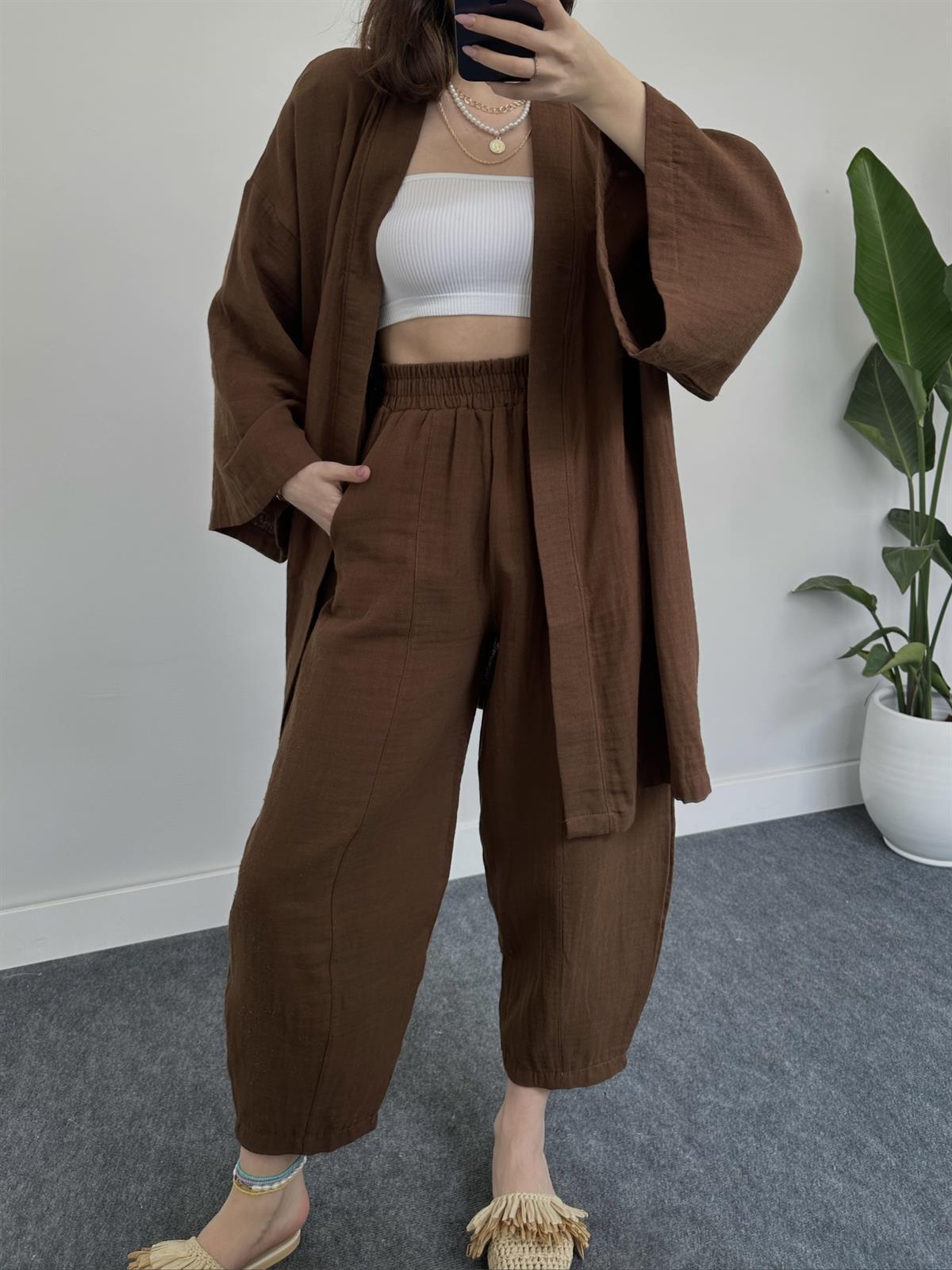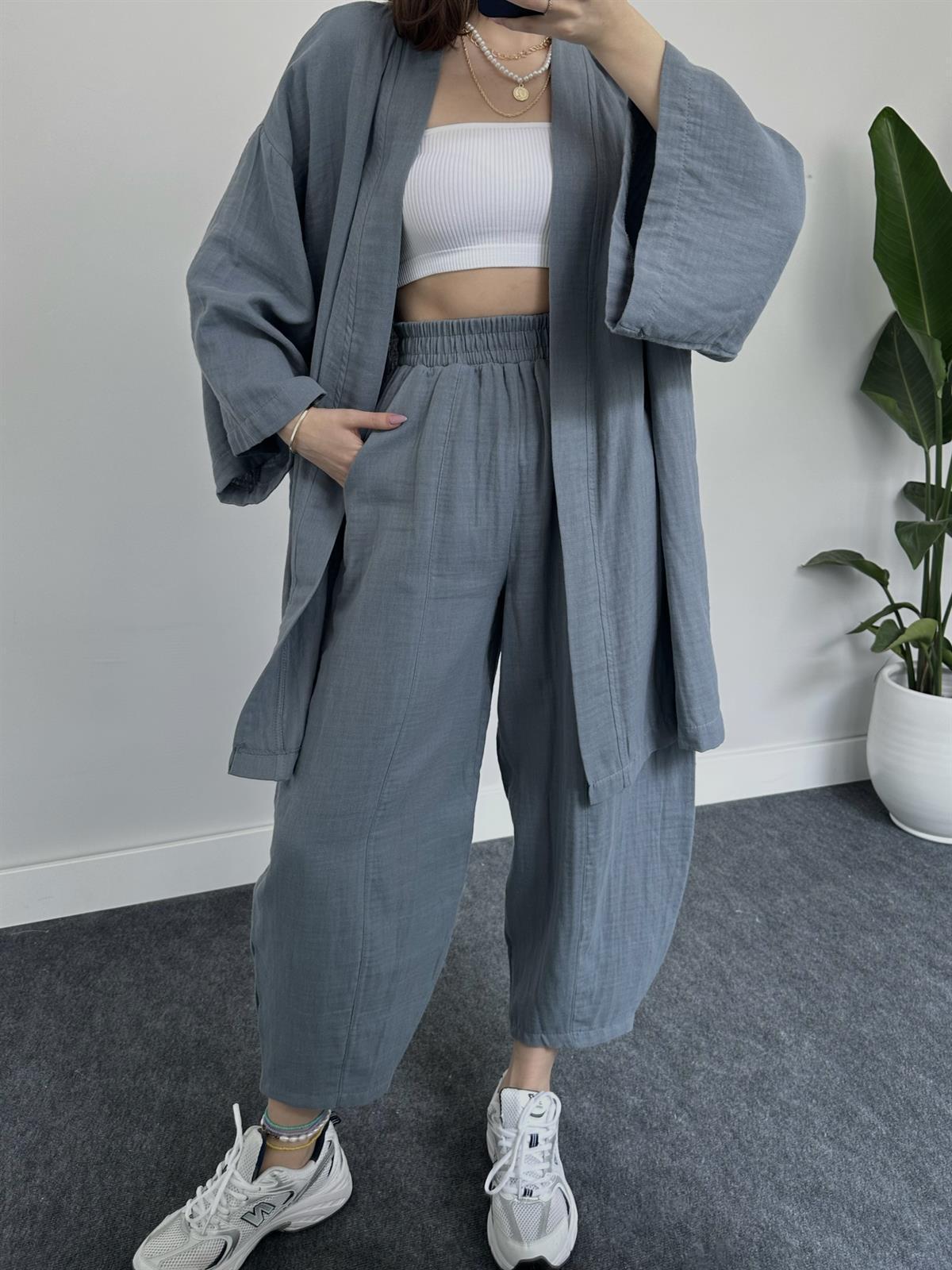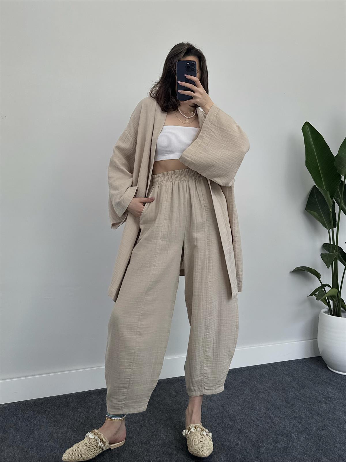 2023 국경 유럽 및 미국 아마존 여성 단색면 및 린넨 느슨한 긴팔 카디건 와이드 레그 크롭 팬츠 캐주얼 세트스토어 가기