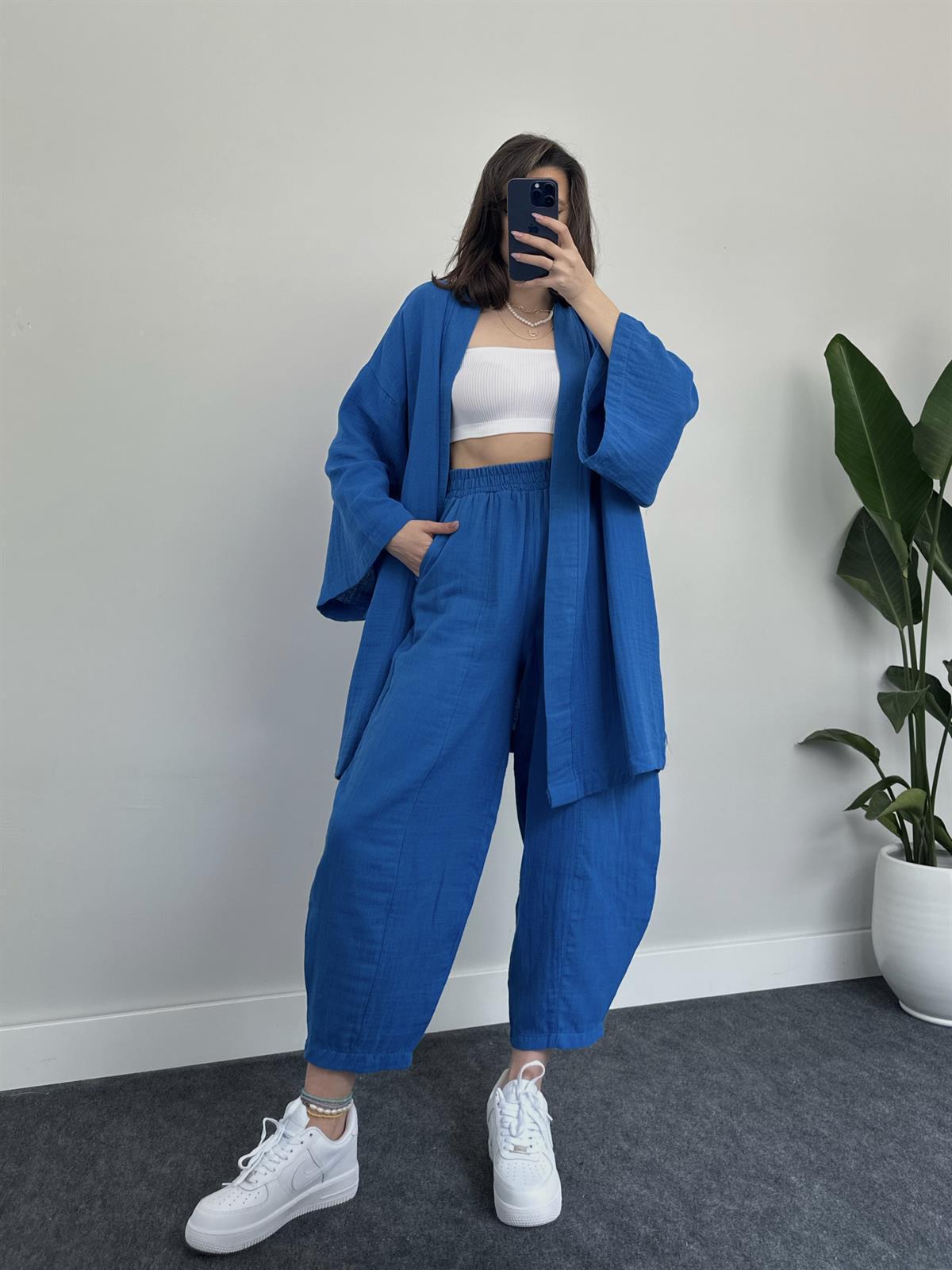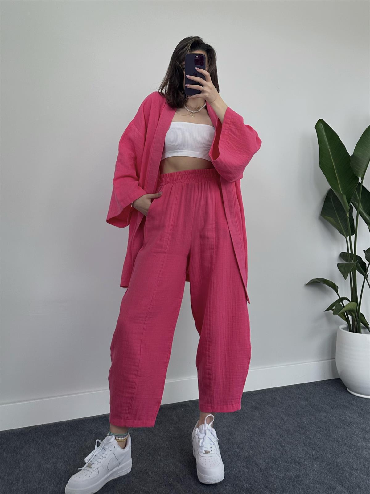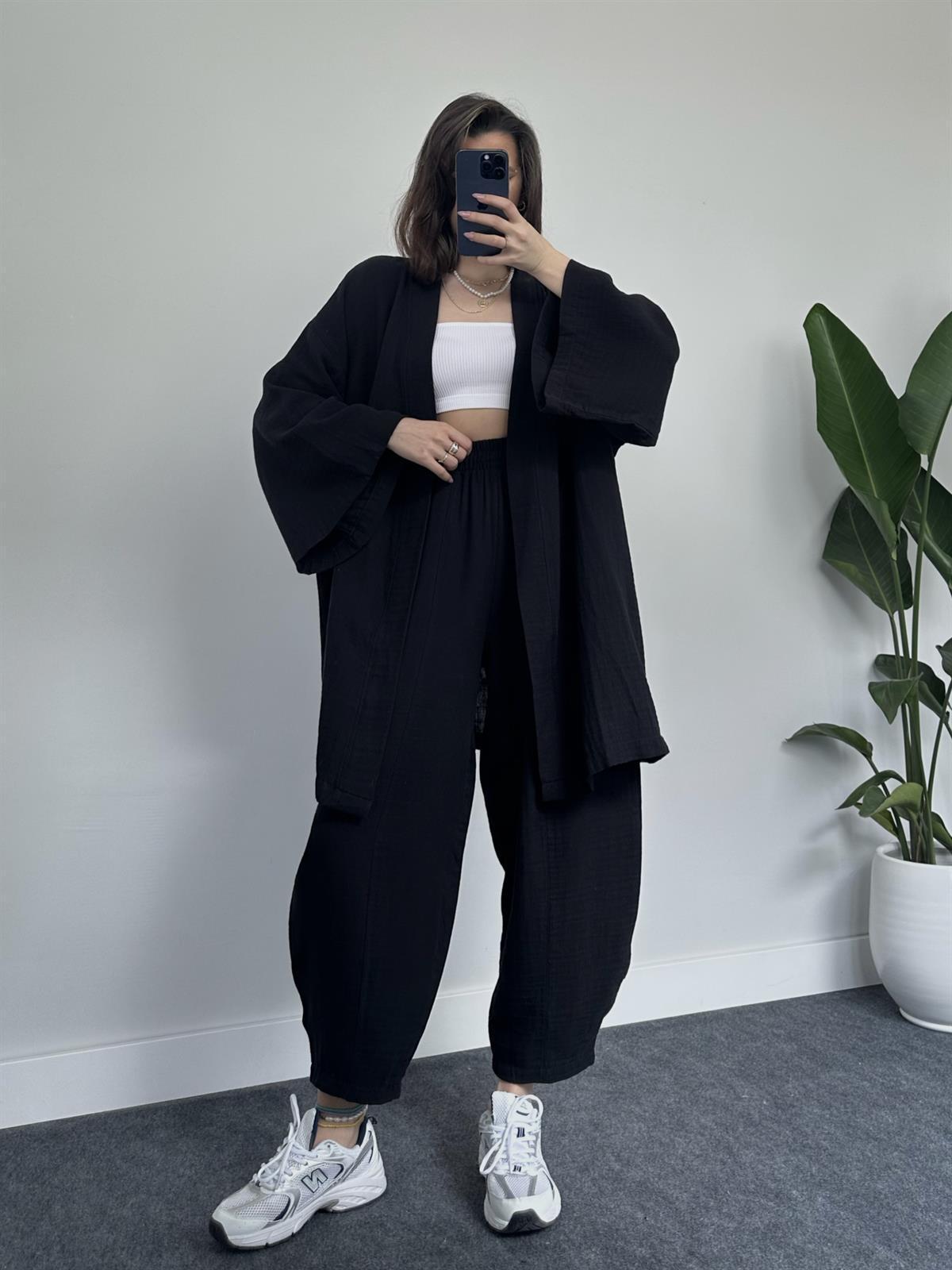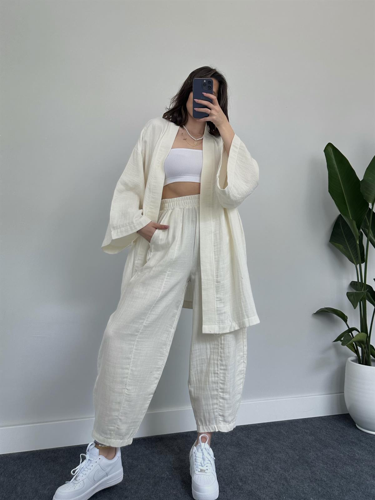 2023 국경 유럽 및 미국 아마존 여성 단색면 및 린넨 느슨한 긴팔 카디건 와이드 레그 크롭 팬츠 캐주얼 세트스토어 가기