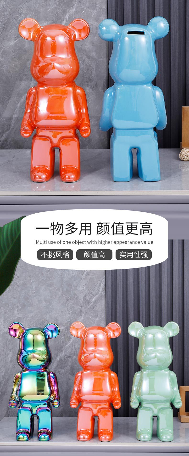 폭력 곰 세라믹 돼지 저금통 장식품 거실 조명 고급 데스크탑 바닥 고급 전기도금 장식 돼지 저금통 도매
