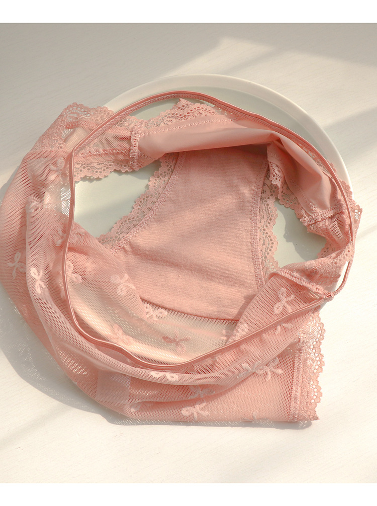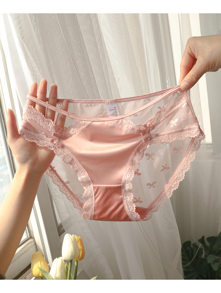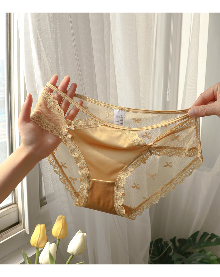 프랑스 스타일 레이스 속옷 여성의 낮은 허리 순수 투명 중공 메쉬 흰색 팬티 가리 스타일 여름 얇은 팬티