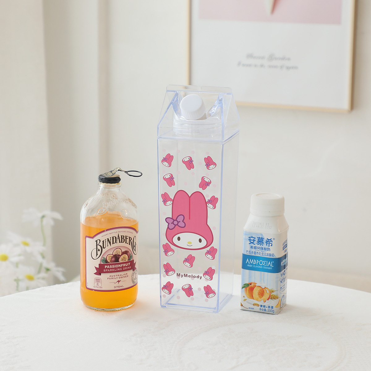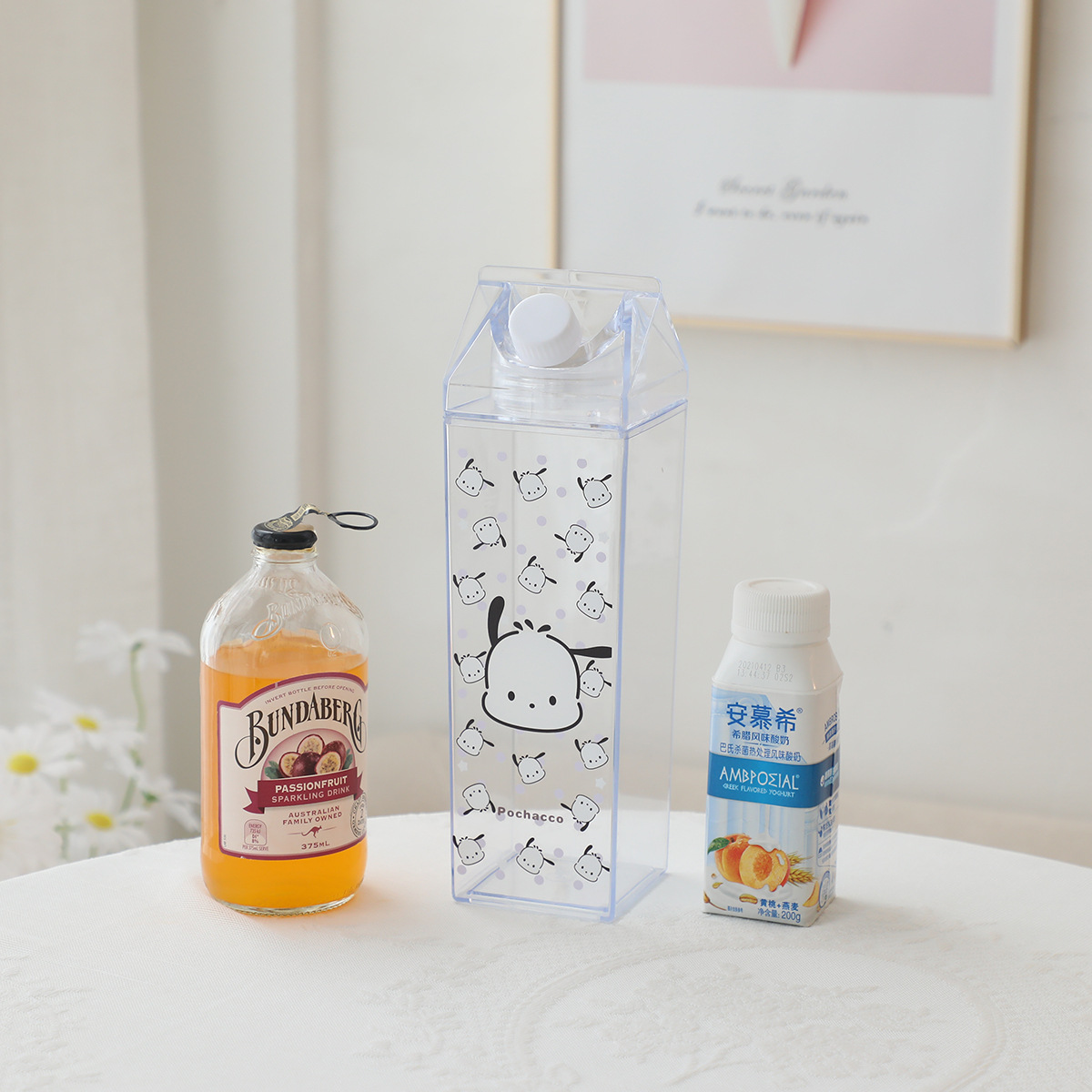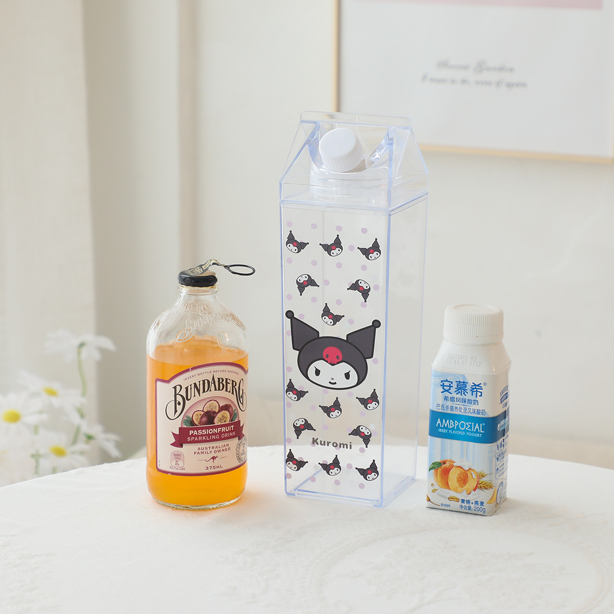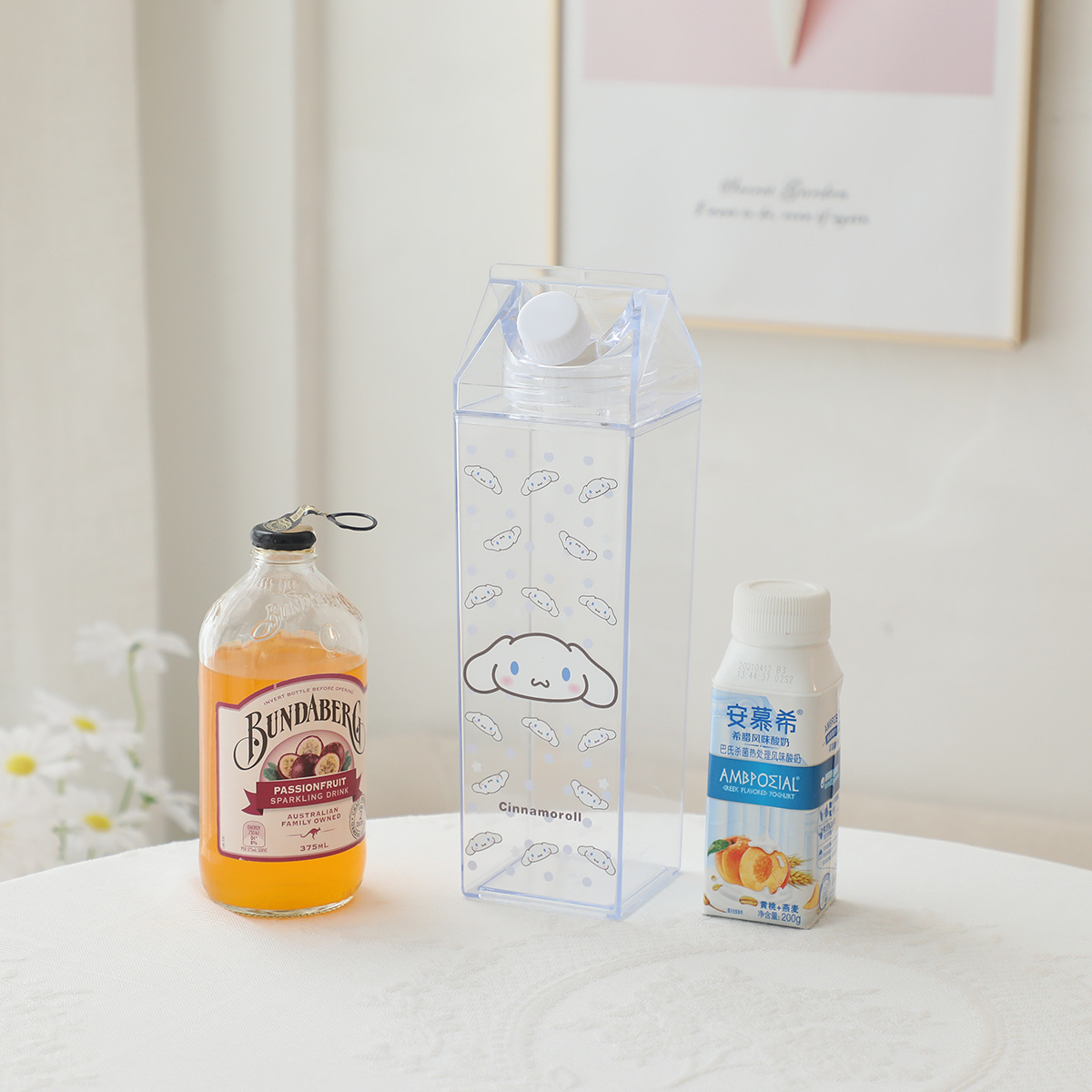 창조적 인 만화 광장 우유 상자 모양의 물 컵 여름 나가는 가구 투명한 대용량 휴대용 주스 상자