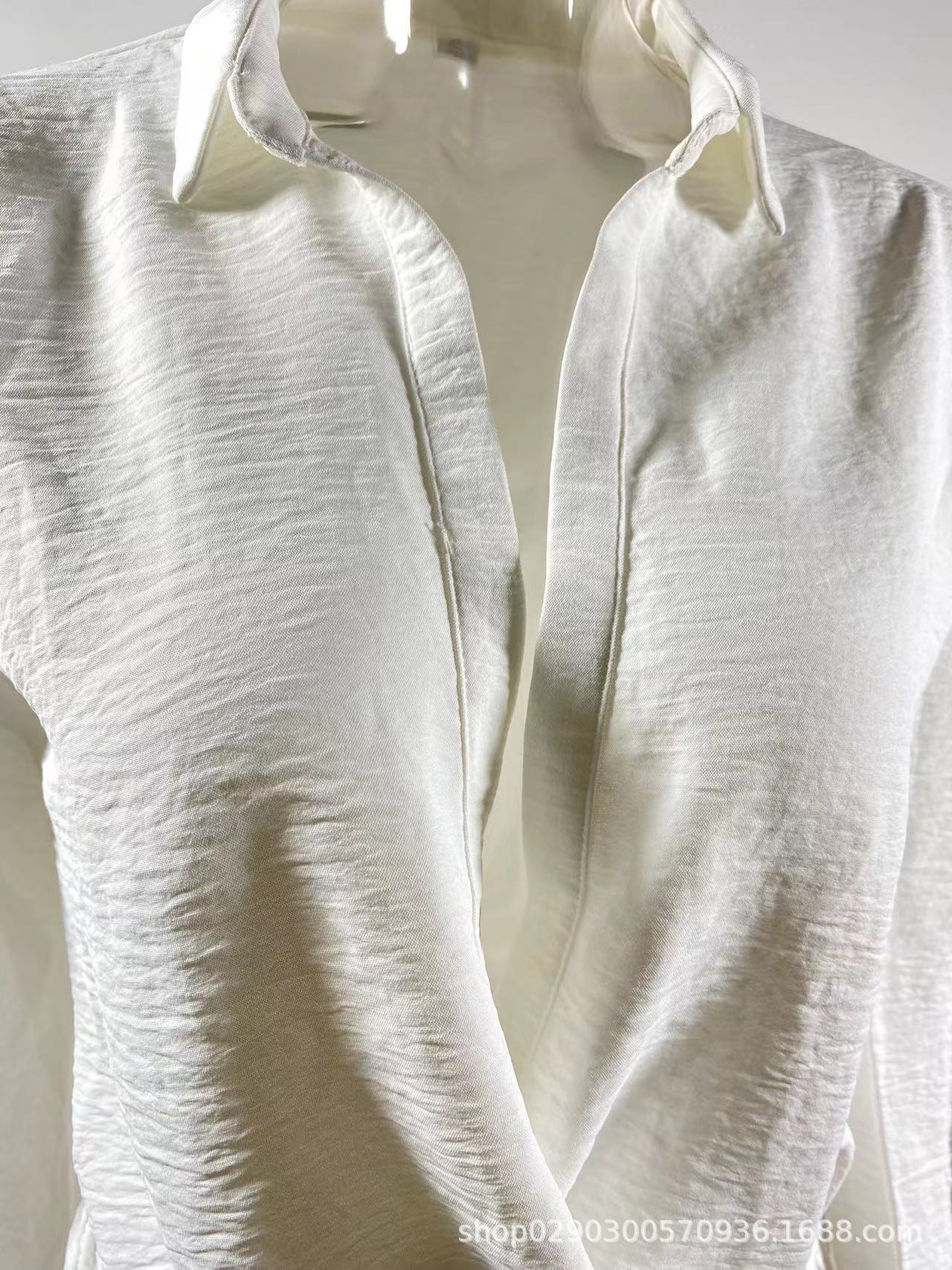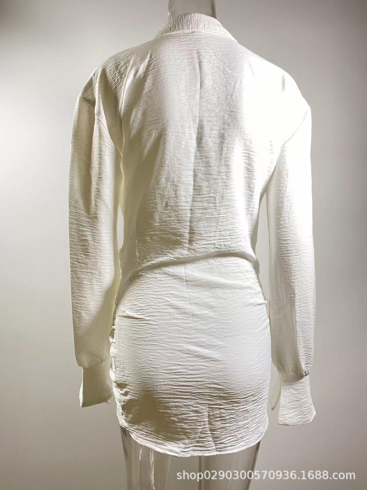 D0746 새로운 유럽과 미국의 긴 소매 흰색 셔츠 섹시 깊은 V 크로스 보더 여성의 새로운 INS 인터넷 연예인 린넨 원피스