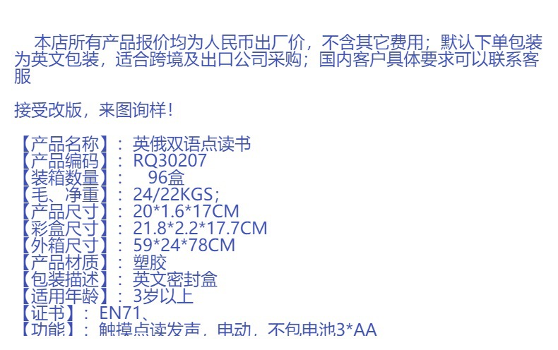 국경 간 러시아어 포인트 독서 보드 영어-러시아어 이중 언어 학습기 어린이 포인트 독서 터치 음성 책 러시아어 전자 책 장난감스토어 가기