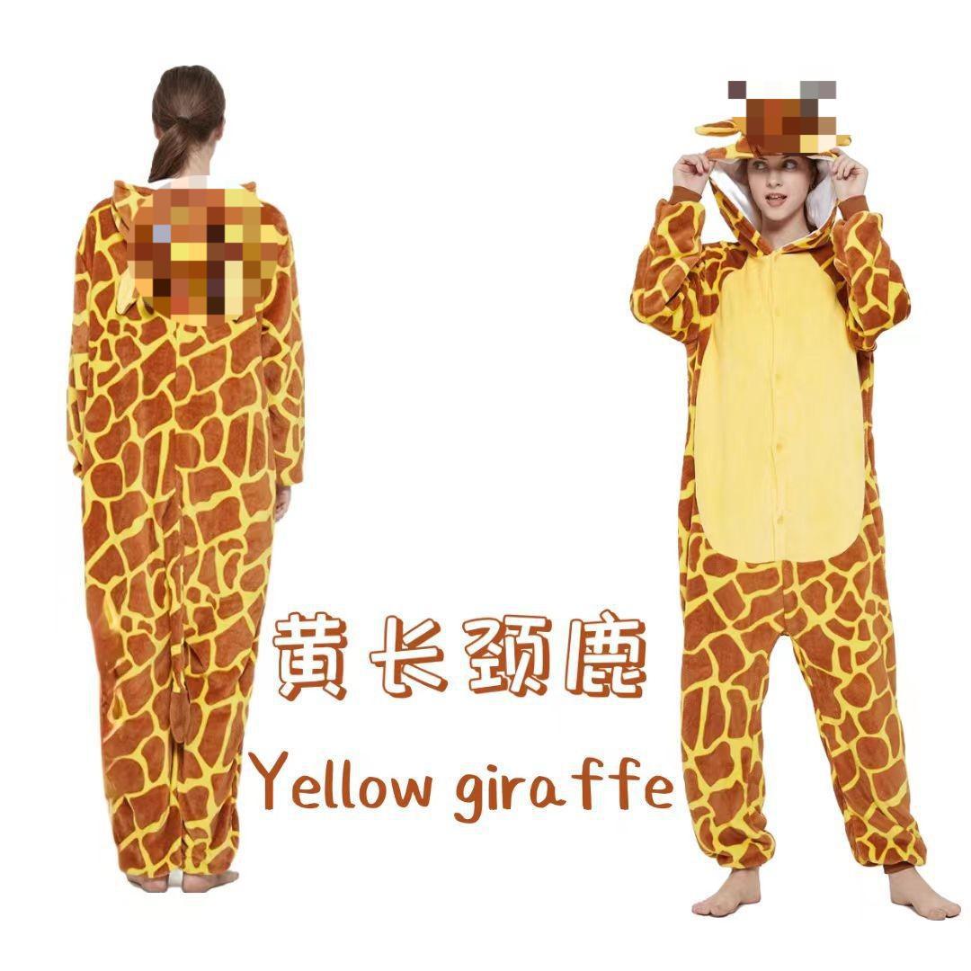 새로운 플란넬 옐로우 기린 잠옷 만화 동물 샴 잠옷 부모-자식 공연 커플 가정 옷 혼합 배치스토어 가기