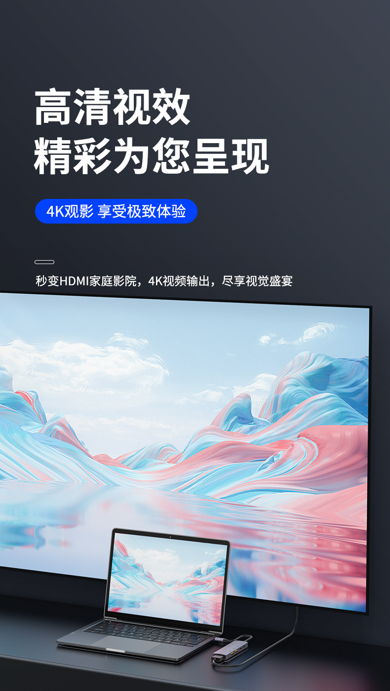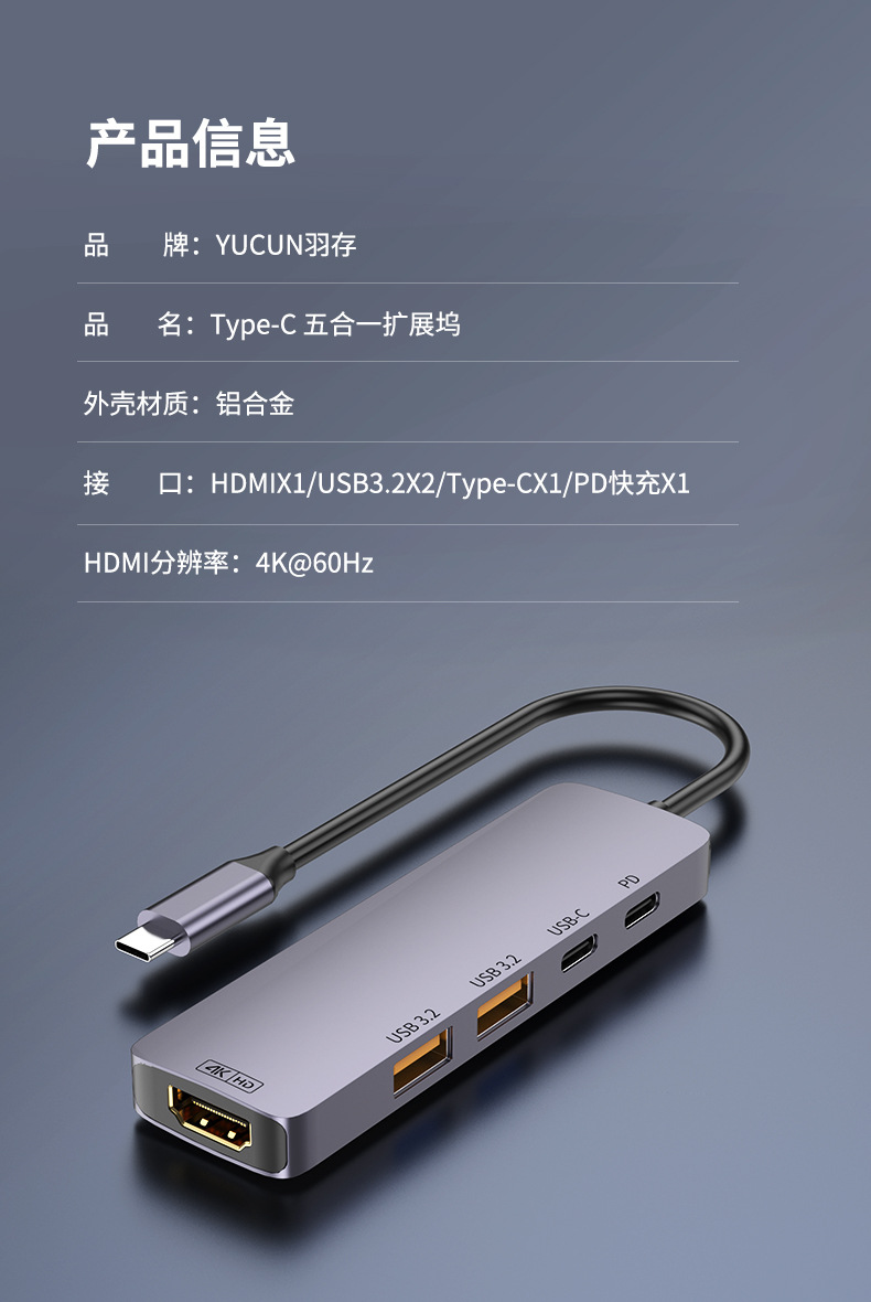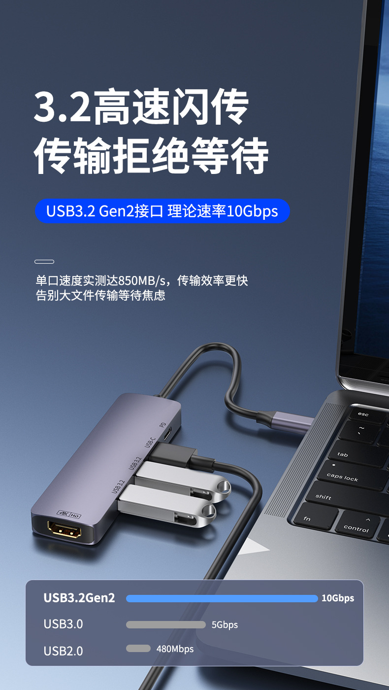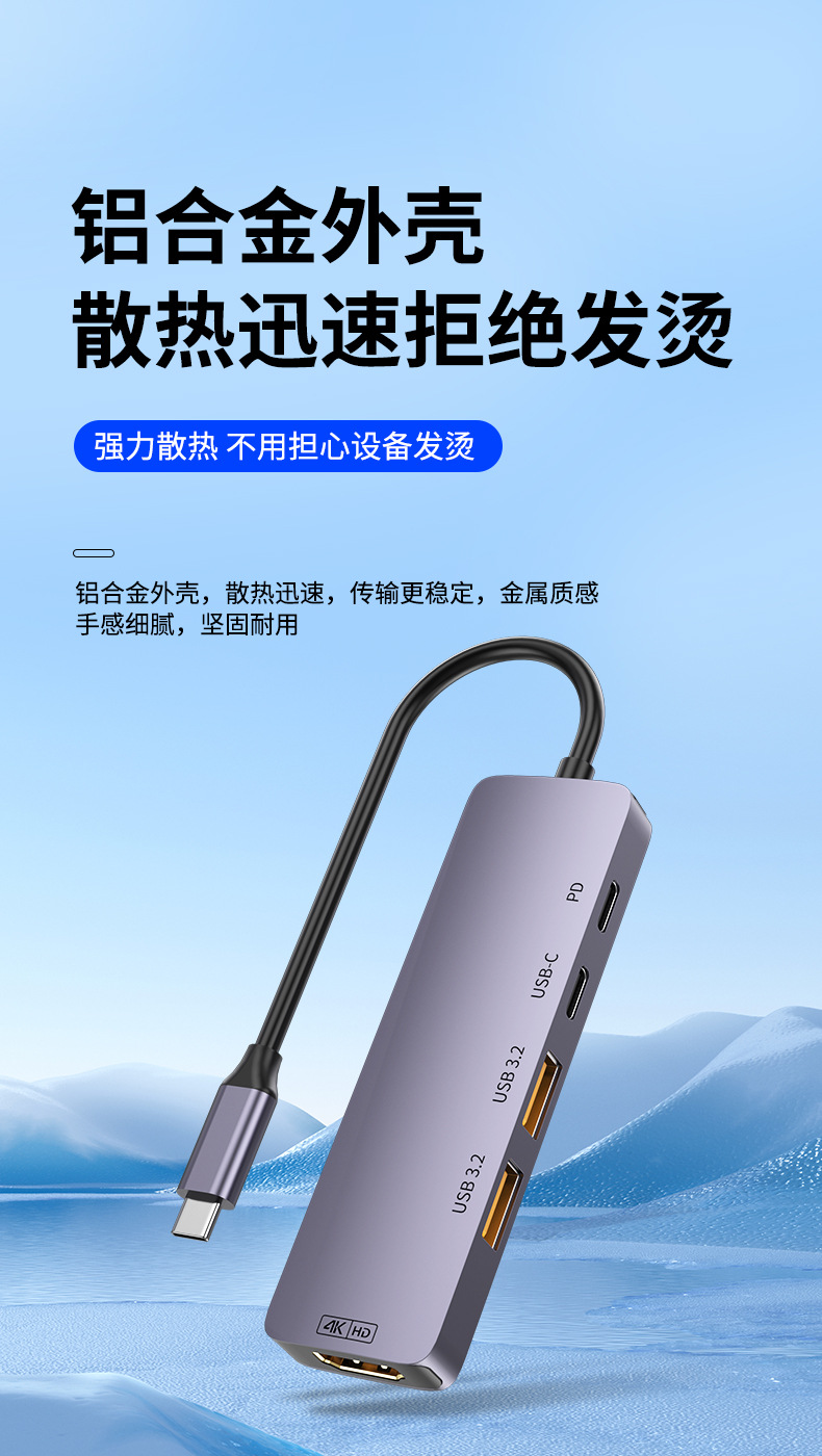 10G 확장 도크 typec 허브 USB3.2hub 분배기 HDMI 고화질 4K60hz 스크린 프로젝션 PD140W스토어 가기