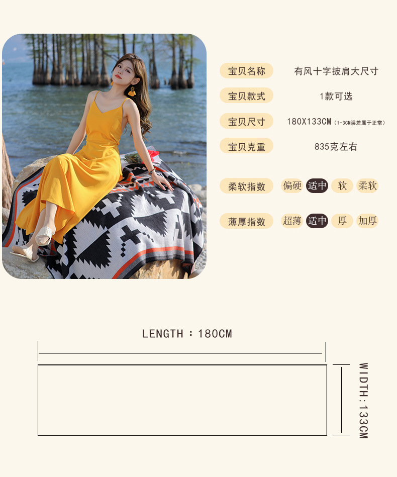 휴가 및 놀이 코트 숄 야외 캐주얼 패션 독특한 스카프 크로스 프린트 패턴 여행 망토스토어 가기